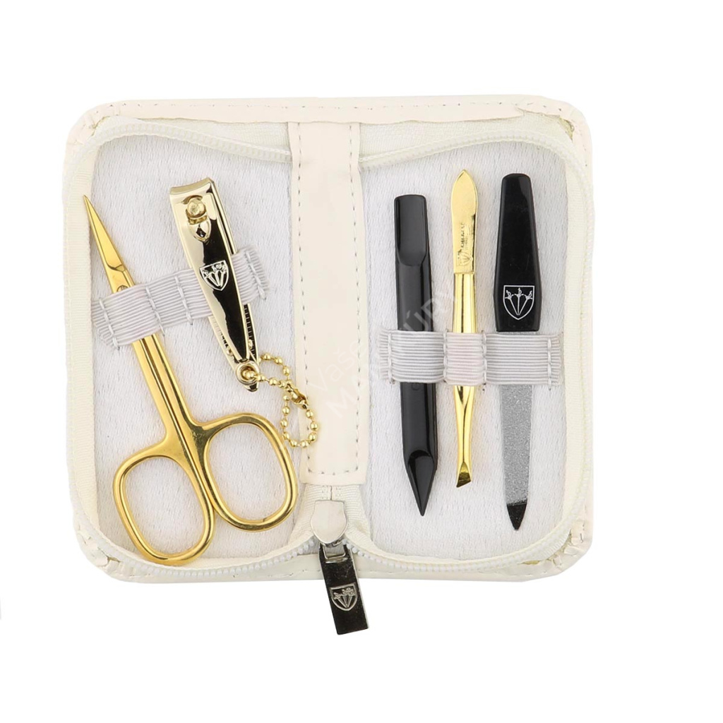 Cestovní dámská 5dílná sada na manikúru je vybavena pozlacenými nástroji německého výrobce manikúr Kellermann.