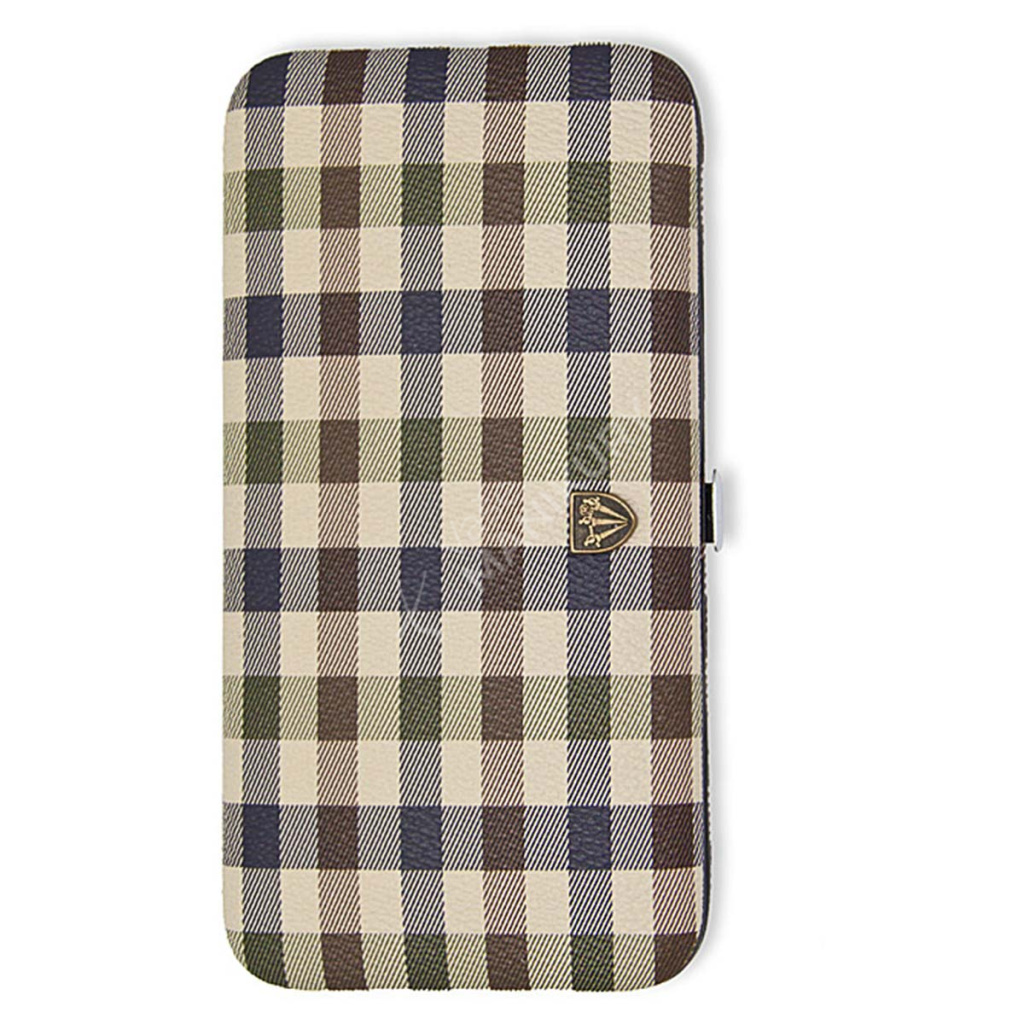 Krásná dámská sada na manikúru pro ženy. Pouzdro s pevným kovovým rámem je vyrobeno ze syntetické kůže s motivem kostky. Dvoudílný ocelový pochromovaný rám umožňuje pohodlné a spolehlivé otevírání manikúry. Látka na vnitřní straně pouzdra je na povrchu sametová, jemná a velmi příjemná na dotek.