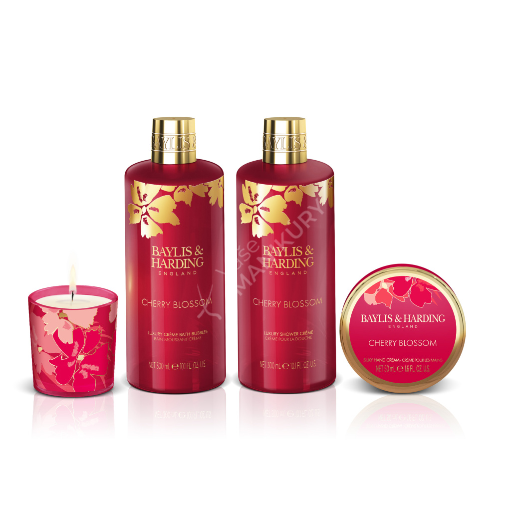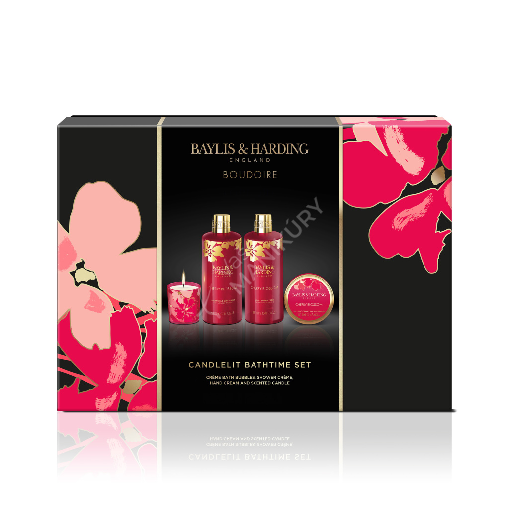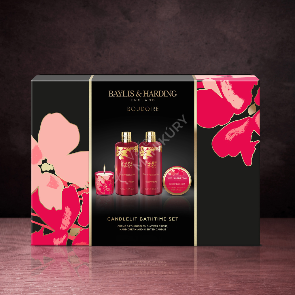 Baylis & Harding Boudoire Dárková sada péče o tělo se svíčkou - Třešňový květ, 4ks