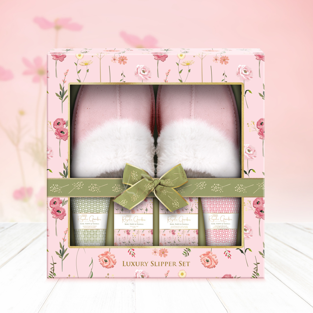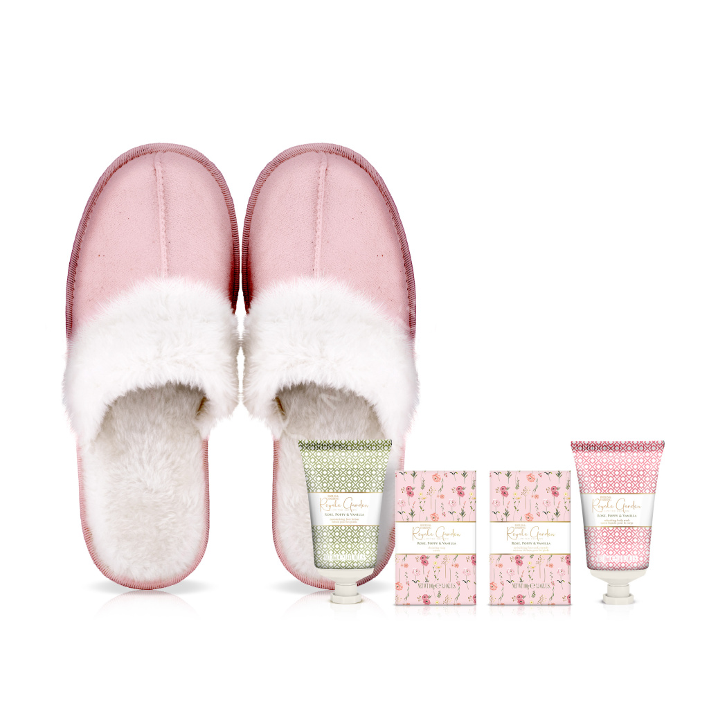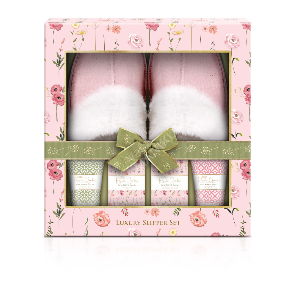 Dopřejte unaveným nohám pohodlí a péči. Dárková sada obsahuje krém na chodidla, krystalky na koupel chodidel, tuhé mýdlo a sprchový gel s lehkou, ženskou vůní růží, vanilky a vlčího máku. A k tomu pohodlné, měkké bačkory.