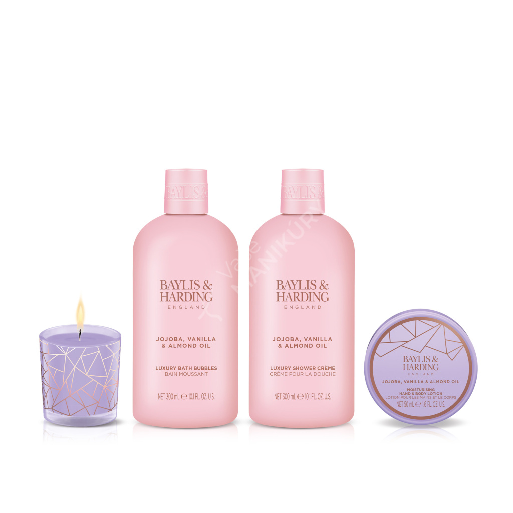 Baylis & Harding Dárková sada péče o tělo se svíčkou - Jojoba & Vanilka, 4ks
