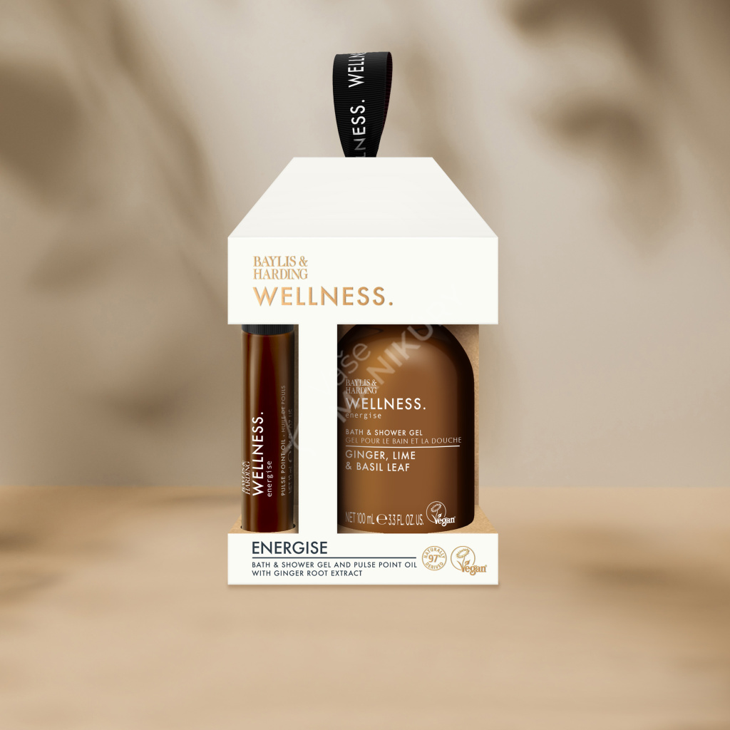 Energizující duo obsahuje sprchový gel a uvolňující pulzní olej s uklidňující vůní zázvoru, citrónu a bazalkových listů.