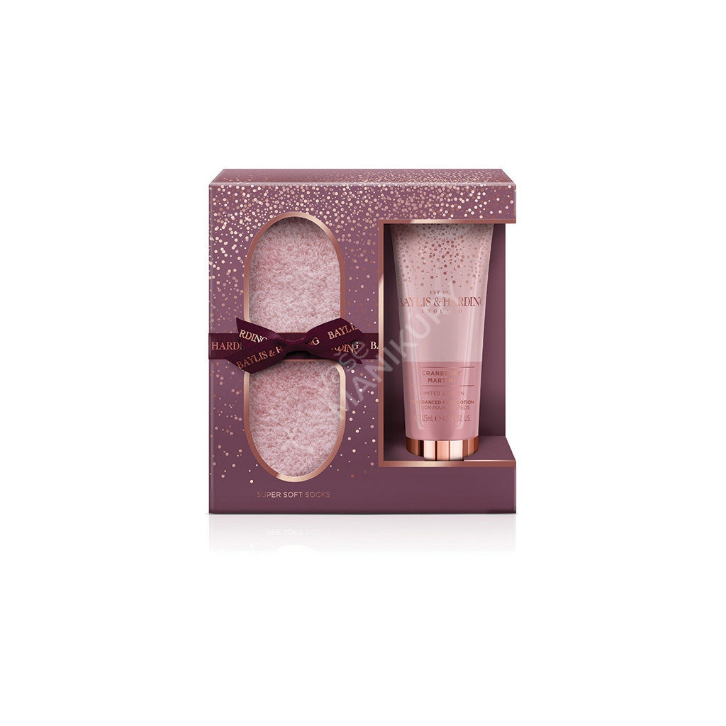 Luxusní dárkový set péče o nohy BAYLIS & HARDING obsahuje hydratační mléko a ponožky.Pečující mléko obsahuje vitamíny A, B a C a zanechává chodidla vláčná, jemná a provoněná. Měkké ponožky pomáhají udržet končetiny v teple.