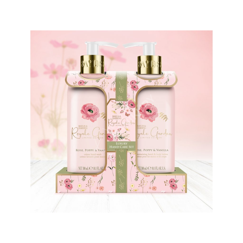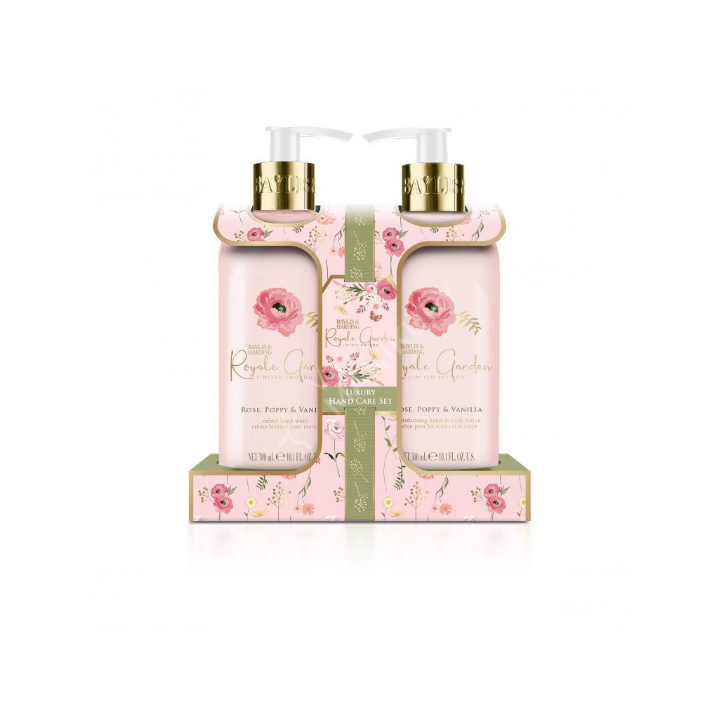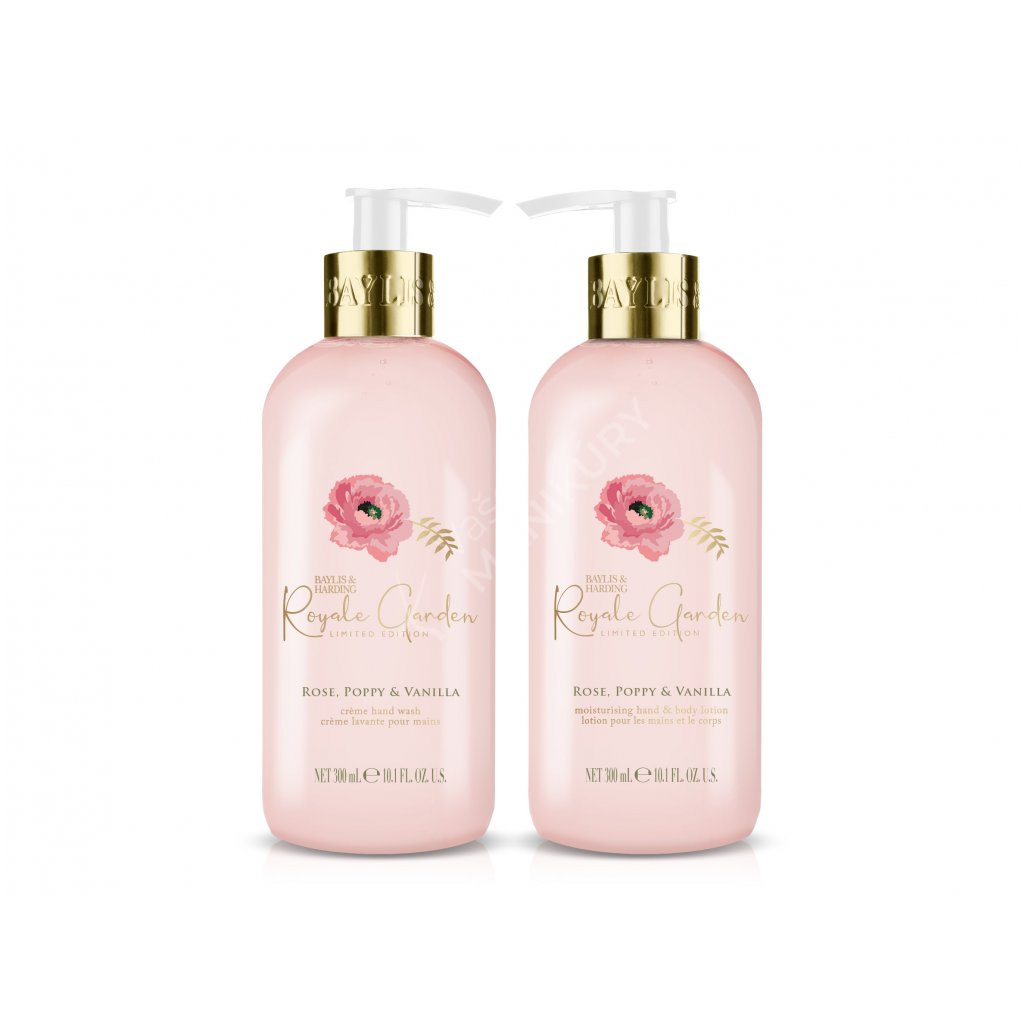 Romantická dárková sada BAYLIS & HARDING v kouzelném balení obsahuje tekuté mýdlo a mléko na ruce a tělo. Mycí gel šetrně čistí pokožku rukou, aniž by ji vysušoval a krém na tělo a ruce zvláčňuje a zjemňuje. Luxusní vůně inspirovaná anglickou zahradou v sobě snoubí něžné květinové tóny a romantický design. Vychutnejte si sametově jemné ruce, provoněné květinovou vůní růží, máku a vanilky.