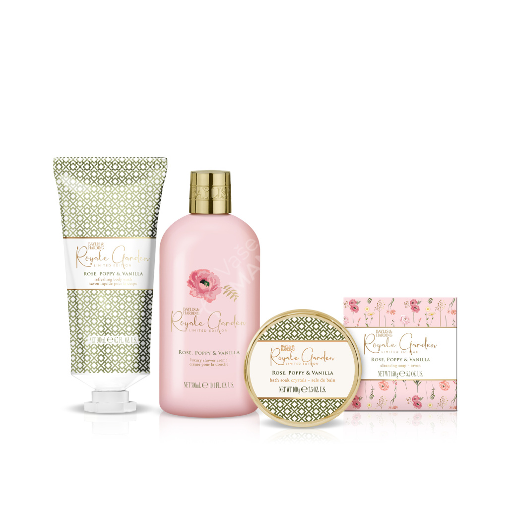 Baylis & Harding Sada péče o tělo v dárkovém košíku - Růže, Vlčí mák & Vanilka, 4ks