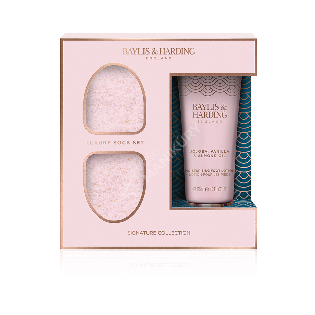 Luxusní dárkový set péče o nohy Baylis & Harding obsahuje krém na nohy a pár měkkých ponožek.