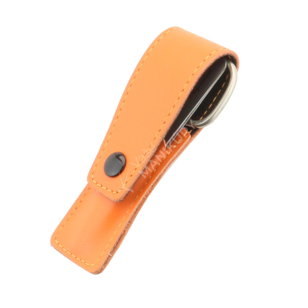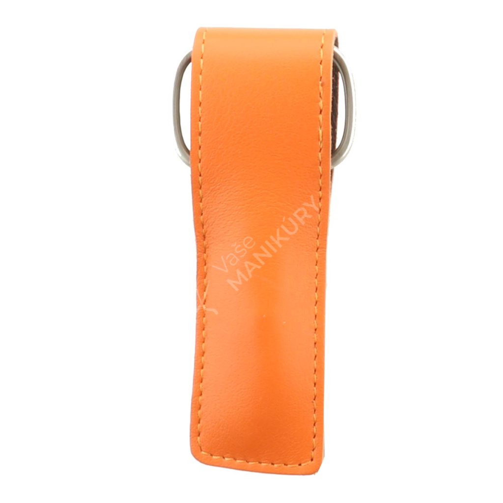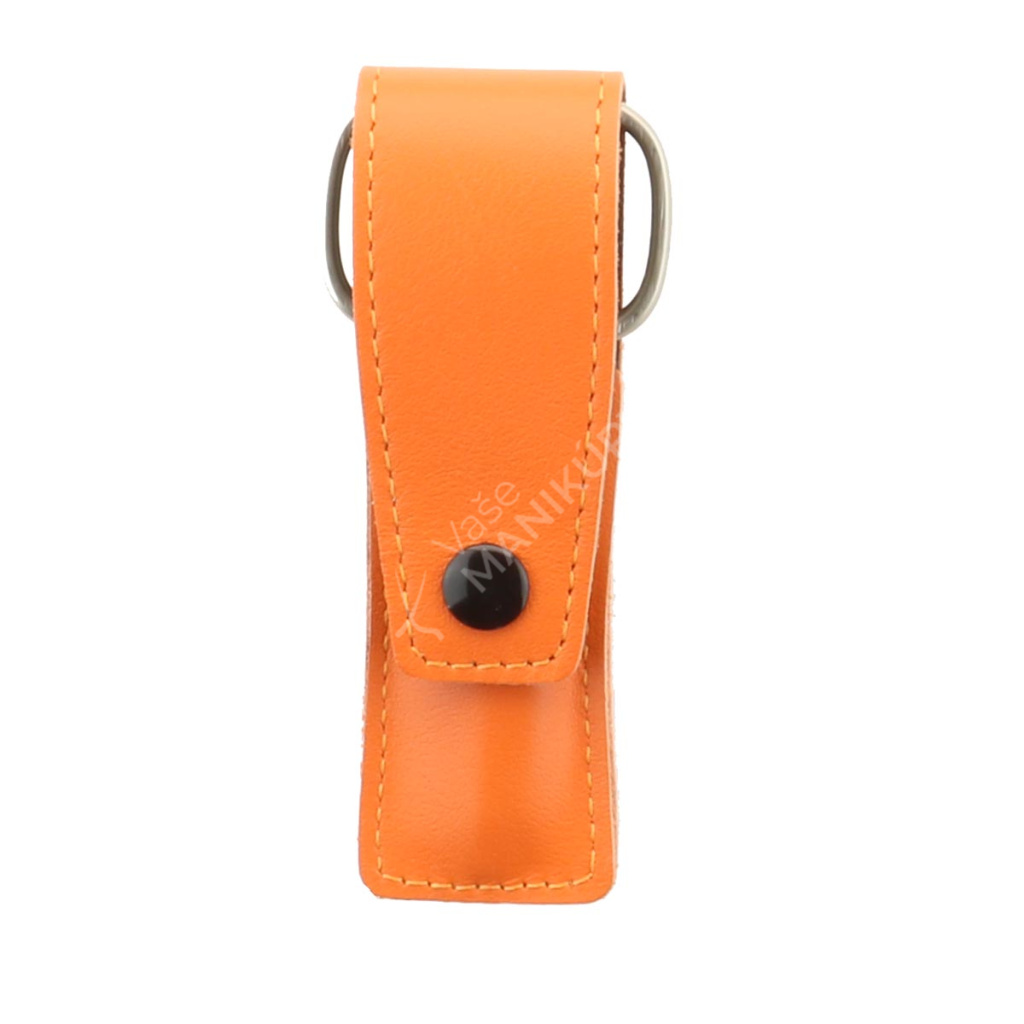 Malá a praktická sada na manikúru v oranžovém pouzdru z přírodní hovězí kůže. Pouzdro se uzavírá na klopnu.