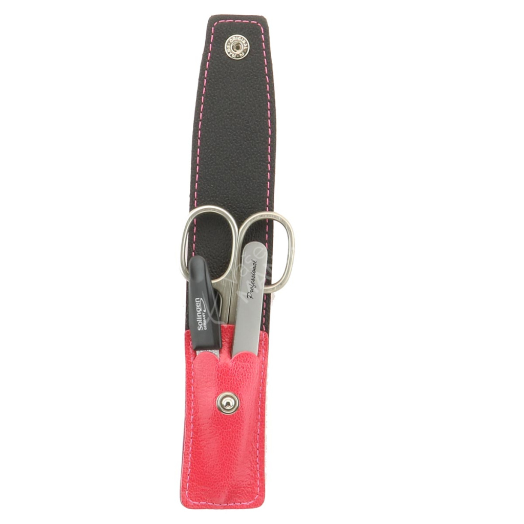 Růžová kožená sada na manikúru do kabelky s nůžkami a pilníkem Solingen. Ideální na cestování.