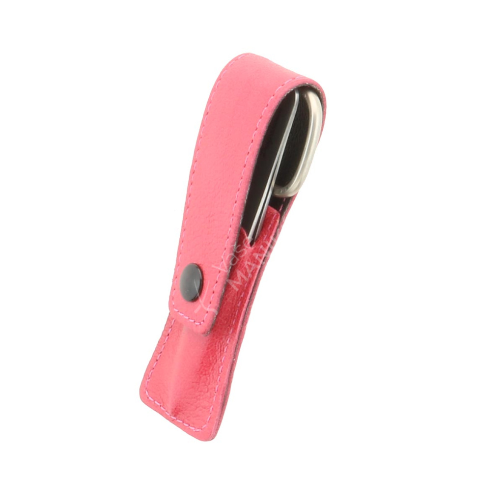 Malý a praktický set na manikúru v růžovém pouzdru z přírodní hovězí kůže . Pouzdro se uzavírá na klopnu.