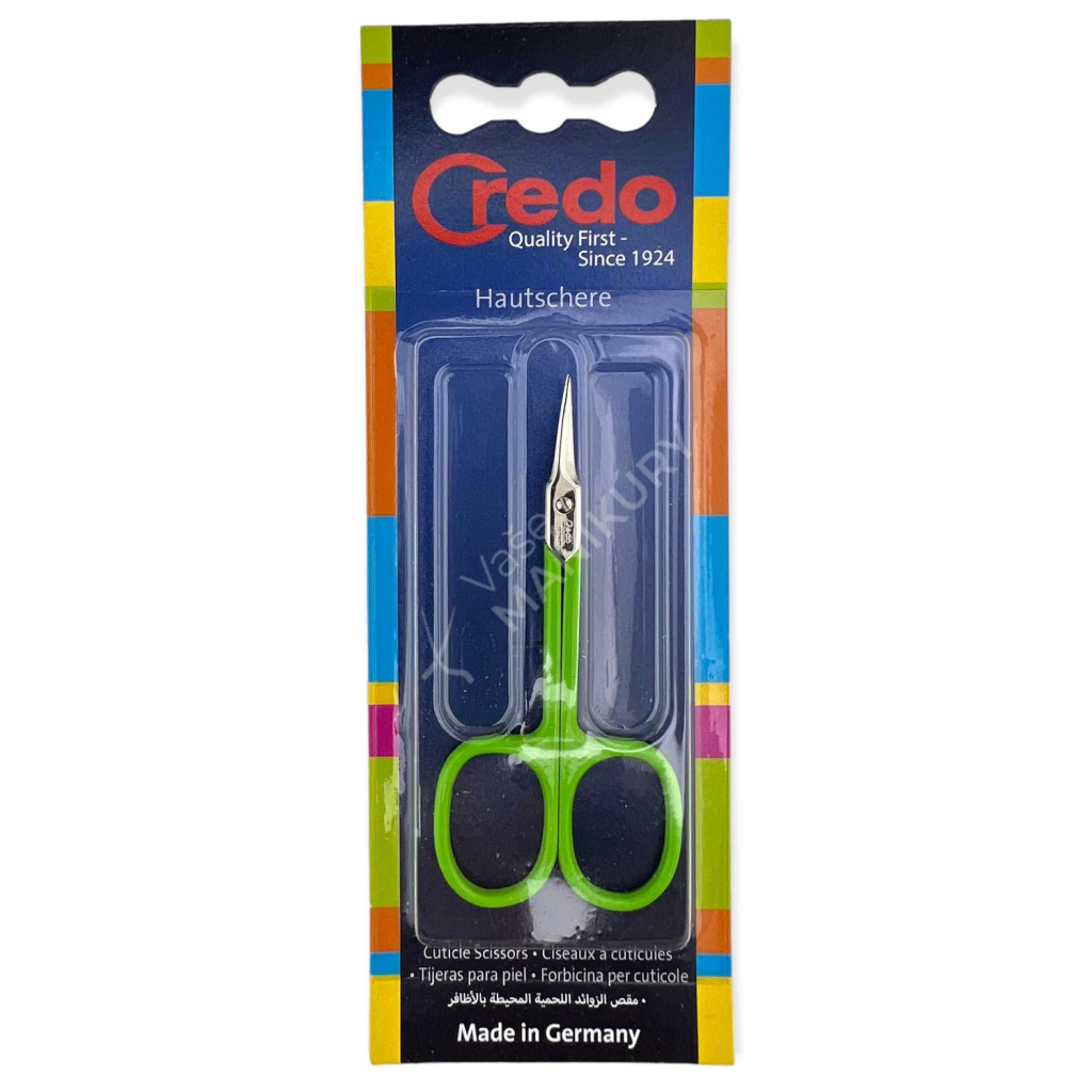 Velmi kvalitní nůžky na nehtovou kůžičku tradiční německé značky Credo Solingen. Mají velmi ostré, jemně prohnuté a štíhlé břity a speciální tvar pro stříhání nehtové kůžičky.