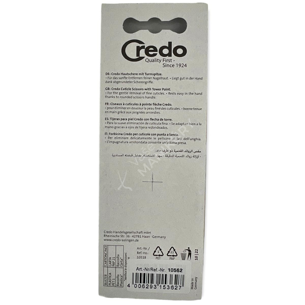 CREDO je zosobněním inovativních a vysoce kvalitních nástrojů určených pro pedikúru a manikúru. Péče o ruce a nohy je s nástroji Credo zcela nekomplikovaná a jednoduchá. Všechny výrobky CREDO byly vyvinuty s ohledem na nejvyšší standardy kvality. Od příslušenství pro pedikúru a manikúru až po nástroje pro péči o obličej a vysoce kvalitní nástroje pro podiatry a profesionální pedikéry. Inovativní design, rozmanitý výběr nástrojů pro pedikúru a manikúru a kvalita "Made in Solingen, Germany", taková je filozofie společnosti Credo Solingen již od roku 1924. Všechny produkty, které Credo exportuje do více než 60 zení po celém světe mohou právem nést své jméno.