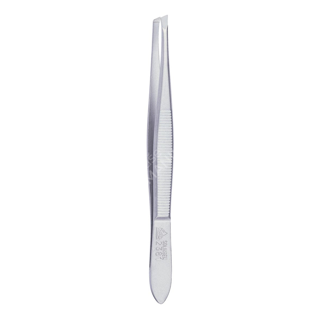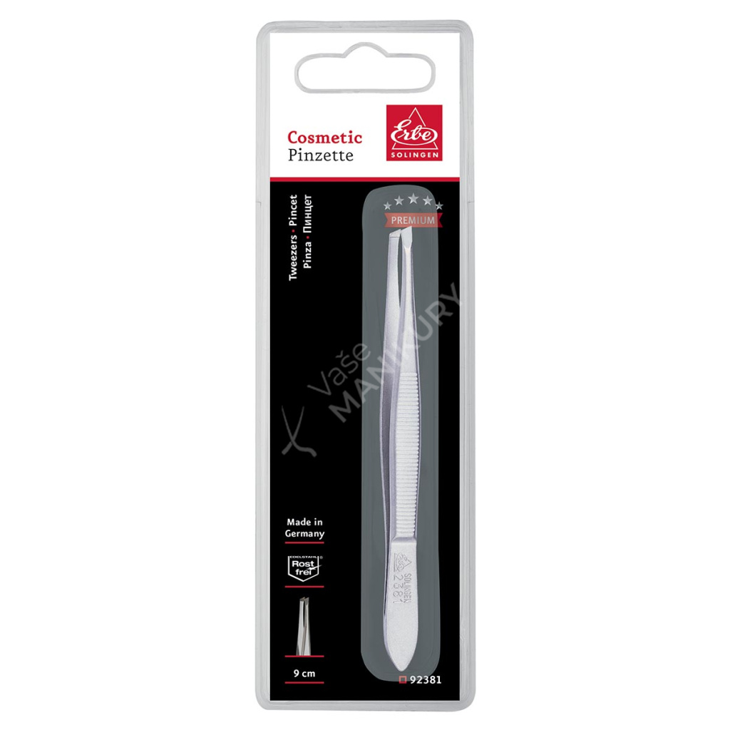 Kosmetická šikmá pinzeta Erbe Solingen z kované nerezové oceli.