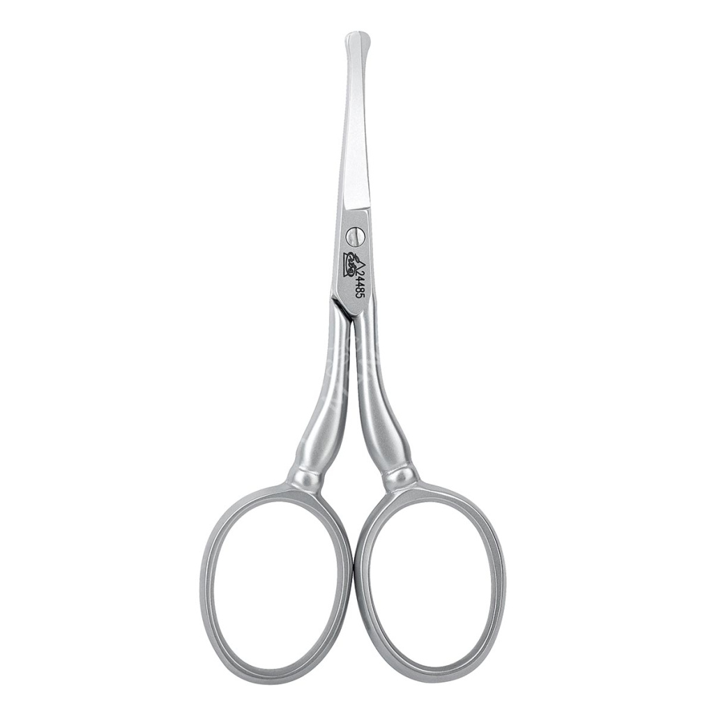 Nerezové nůžky pro zastřihování vousů a bezpečné odstraňování chloupků v nose, se zaoblenou špičkou proti zranění.