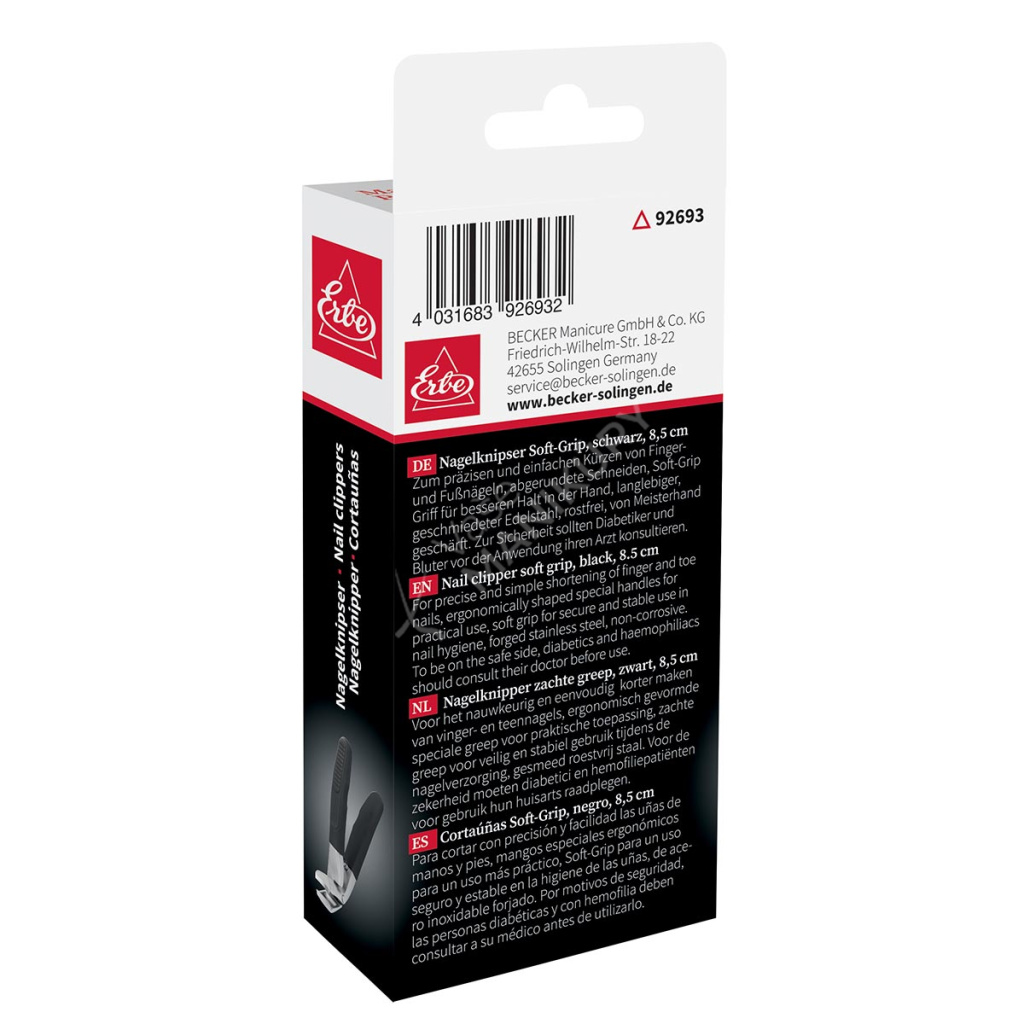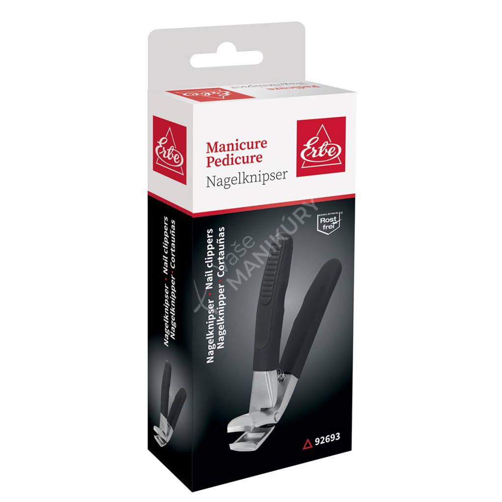 Nerezové kleštičky na nehty ERBE Solingen s měkkým protiskluzovým úchopem v elegantní černé barvě.