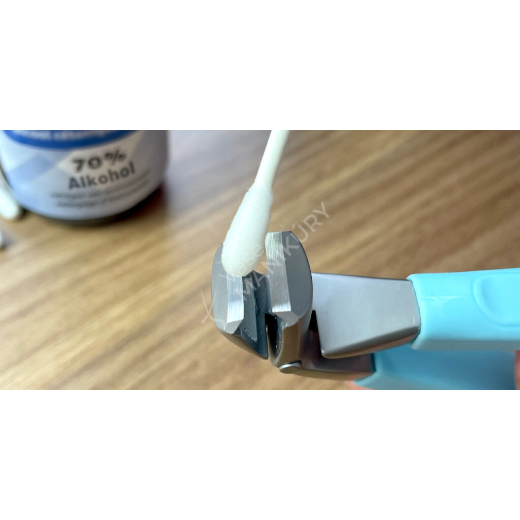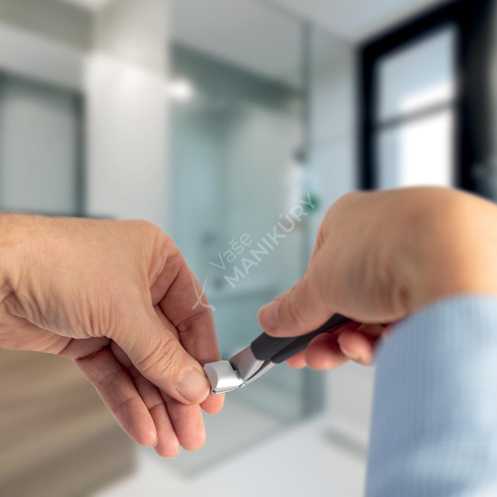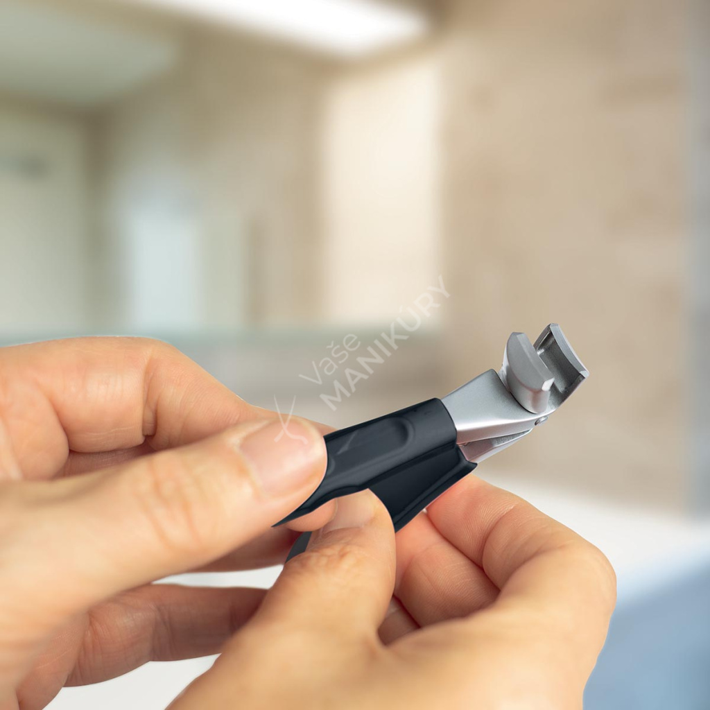 Ergonomická rukojeť s protiskluzovým Soft Grip povrchem poskytuje jistotu a pohodlí při každém použití. Unikátní konstrukce navíc umožňuje stříhání jak v klasické, tak i obrácené poloze, což usnadňuje dosažení všech okrajů nehtů v přirozené a komfortní pozici. Horní i spodní břity jsou stejně ostré a precizně broušené pro perfektní výsledek při každém střihu. Díky integrovanému zachytávači zůstává vaše okolí čisté bez nepořádku. Prohlubně na bocích řezných hran zachycují odstřižené zbytky nehtů. Otevřený zastřihovač lze vyprázdnit pouhým vyklopením .