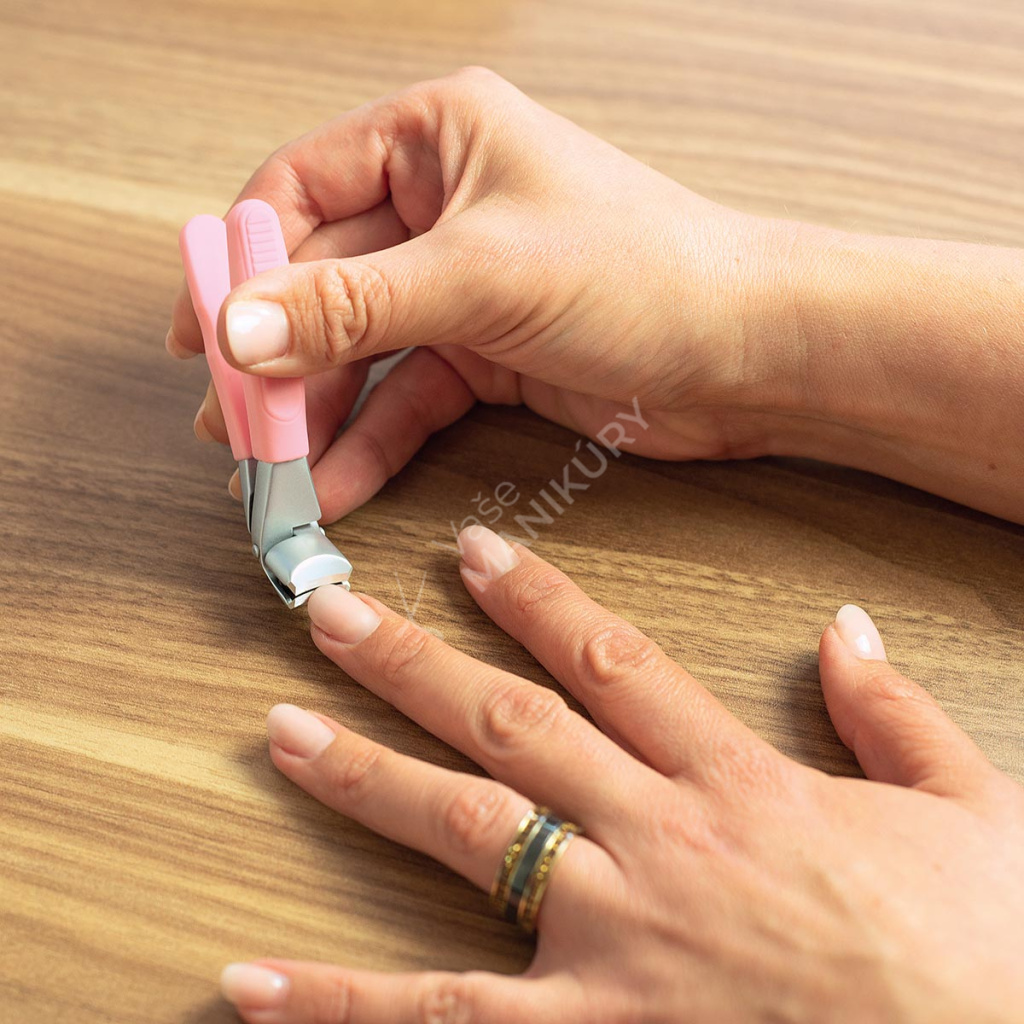 Nerezové kleštičky na nehty ERBE Solingen s měkkým protiskluzovým úchopem v elegantní růžové barvě.