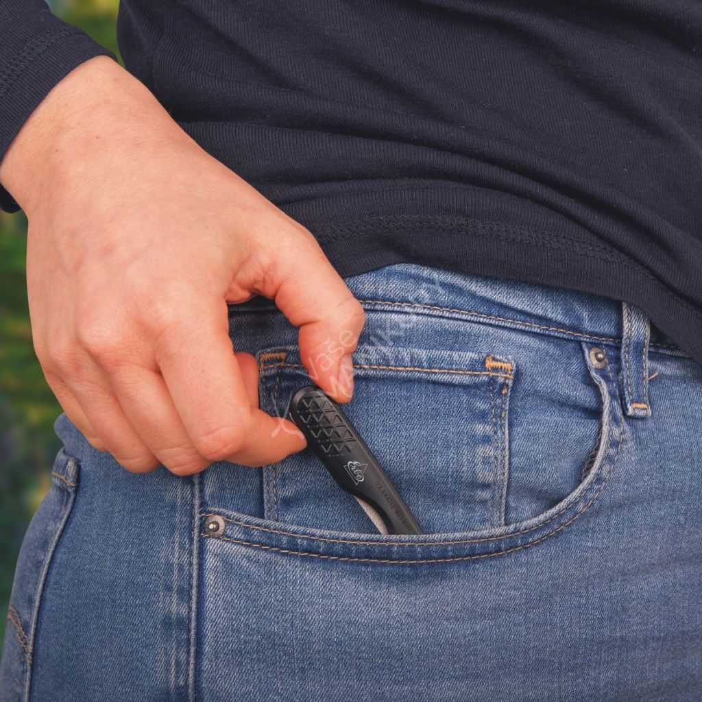 Pilník je vyroben z pružné a odolné nerezové oceli a opatřen safírovým povrchem, který je šetrný k nehtům a zajišťuje hladký a přesný výsledek. Ergonomický tvar s protiskluzovým vzorem umožňuje pohodlné a jisté držení při pilování.