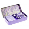 Set šetrně čistícího mýdla, vonného pytlíčku a esenciálního oleje v praktické plechové krabičce s motivem provensálské levandule.
