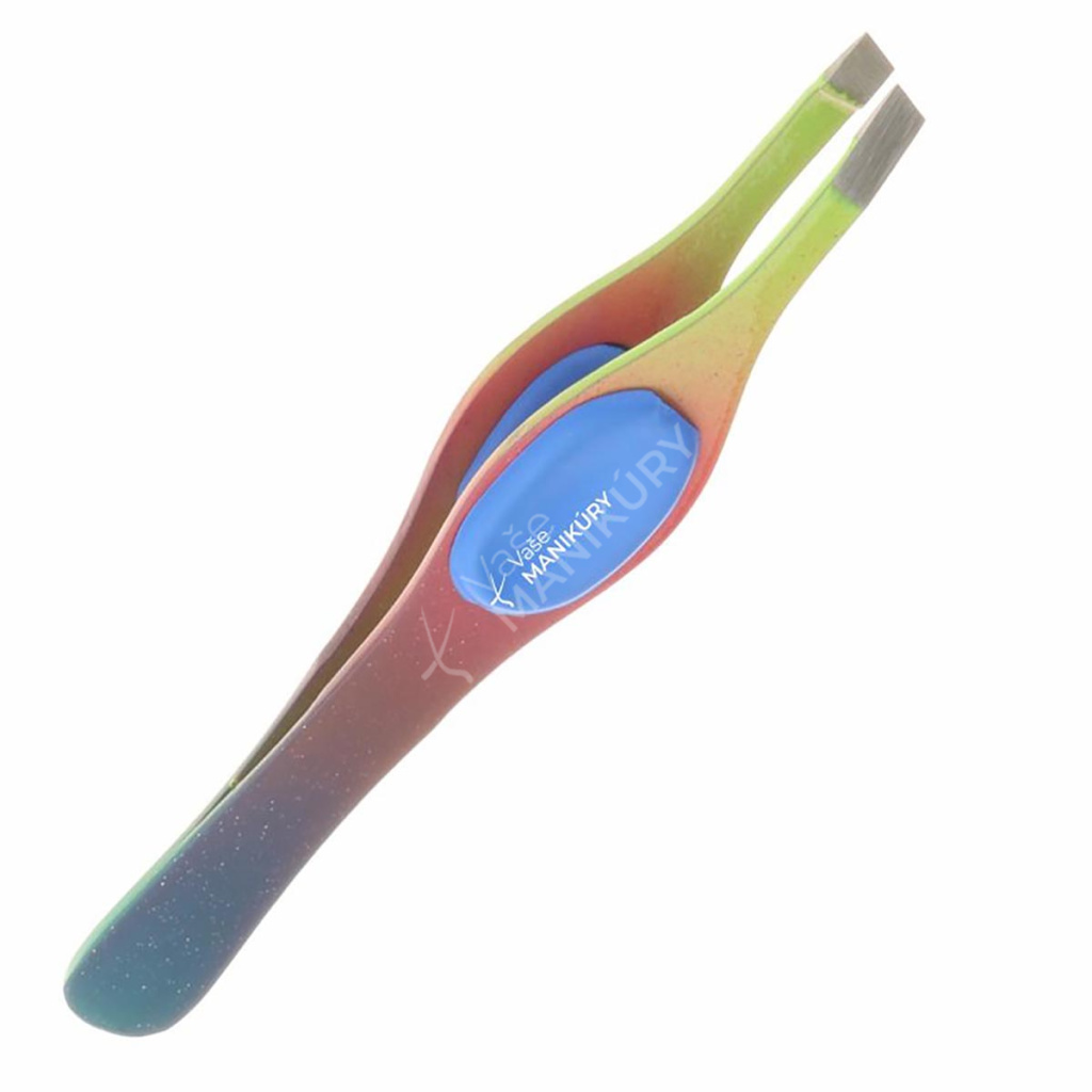 Kosmetická šikmá pinzeta s širokým úchytem.