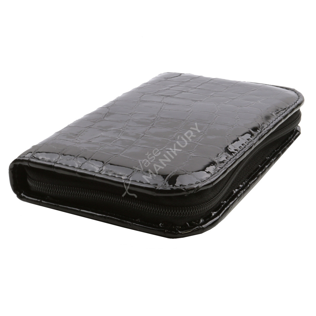Tato elegantní sada na manikúru pro ženy bude vašim skvělým pomocníkem při domácí manikúře. Všechny nástroje jsou přehledně uloženy v elegantním pouzdře. Krásné pouzdro uzavíratelné na zip je vyrobeno z pravé kůže v černé barvě a je upraveno do vzhledu krokodýlí kůže. Látka na vnitřní straně pouzdra je na povrchu sametová, jemná a velmi příjemná na dotek.
