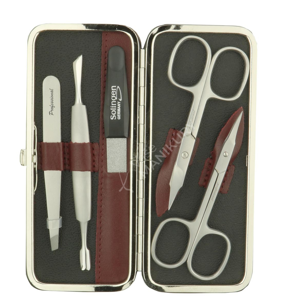 5dílná sada na manikúru pro ženy s kvalitními nerezovými nástroji. Kožené pouzdro ve vínové hladké hovězinové kůži.