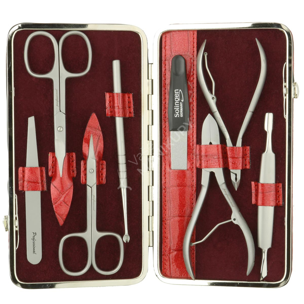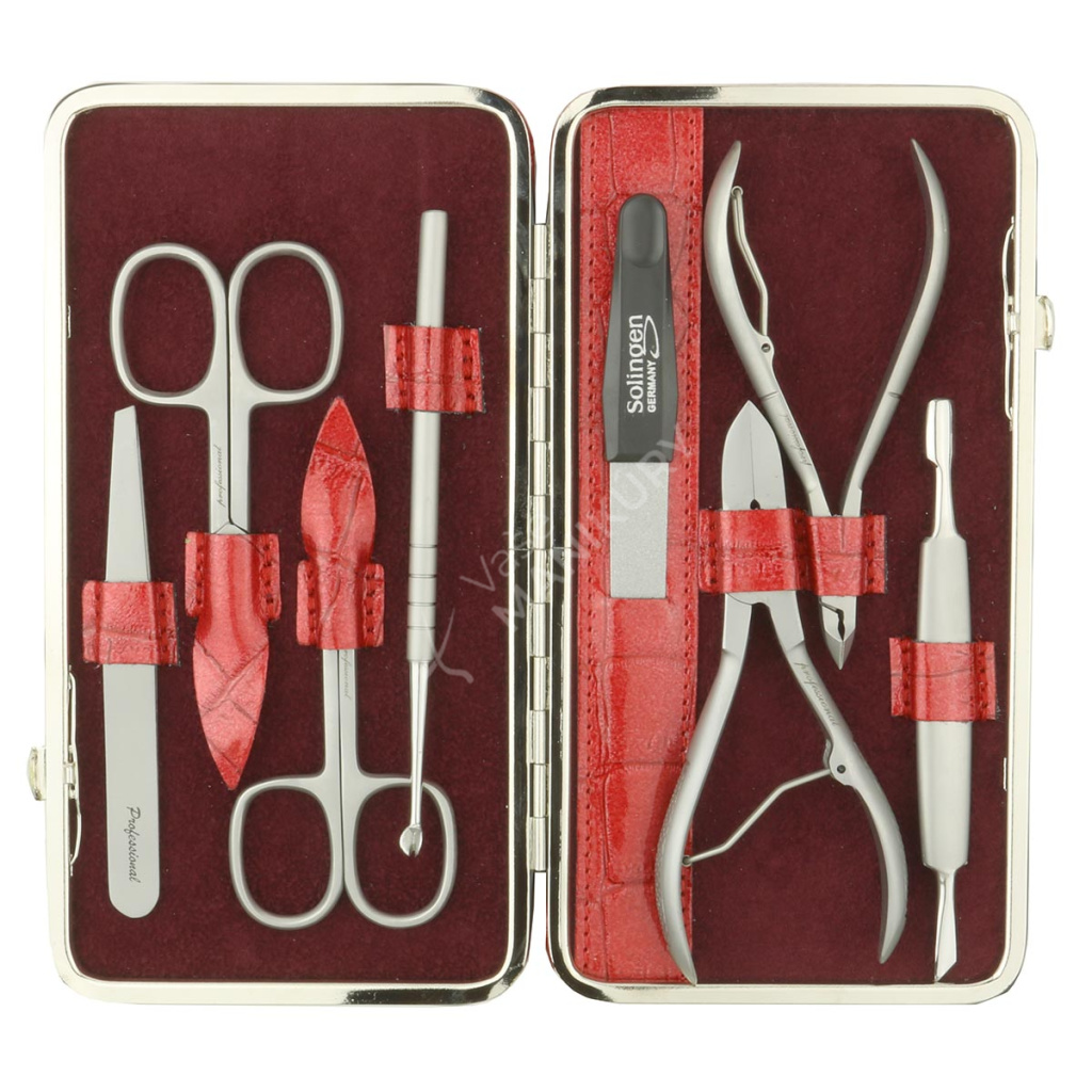 Manikúra vás ale nezaujme jen svým vzhledem, ale i praktickou vnitřní výbavou. Uvnitř je přehledně uloženo osm nástrojů na úpravu nehtů- safírový pilník Solingen a další nástroje na úpravu nehtů z kvalitní nerezové oceli řady Professional v matové úpravě.Tato sada na manikúru bude vašim pomocníkem při domácí péči a pomůže vám udržovat krásný vzhled vašich rukou.