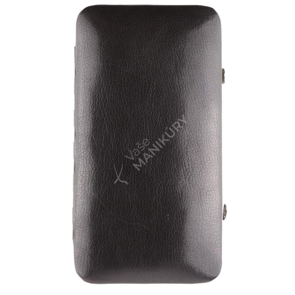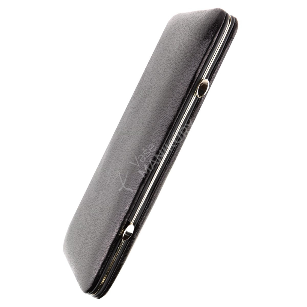 Krásné pouzdro s kovovým rámem je vyrobeno z pravé kůže v černé barvě. Dvoudílný ocelový pochromovaný rám umožňuje pohodlné a spolehlivé otevírání manikúry. Látka na vnitřní straně pouzdra je na povrchu sametová, jemná a velmi příjemná na dotek.