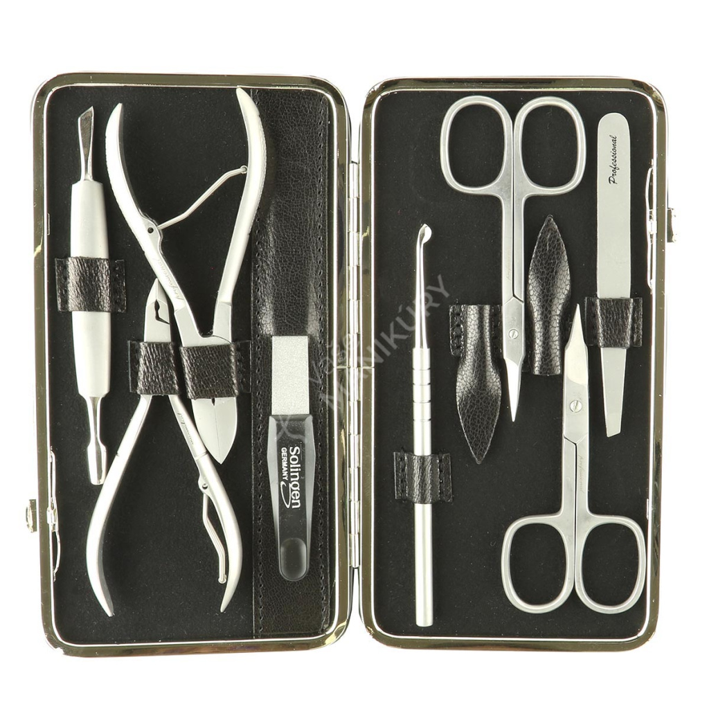 Manikúra vás ale nezaujme jen svým elegantním nadčasovým vzhledem, ale i praktickou vnitřní výbavou. Uvnitř je přehledně uloženo osm nástrojů na úpravu nehtů - safírový pilník Solingen a další manikúrní nástroje řady Professional z nerezové oceli v matové úpravě.Tato sada na manikúru bude vašim pomocníkem při domácí péči a pomůže vám udržovat krásný vzhled vašich rukou.
