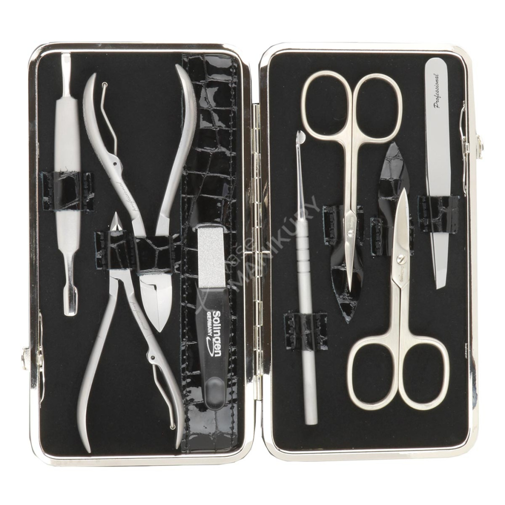 Krásná, prakticky vybavená 8dílná sada na manikúru s nůžkami a pilníkem Solingen v pouzdru z prvotřídní kůže.