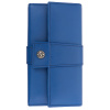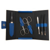 Krásné pouzdro manikúry se zavíráním na patent je vyrobeno z pravé kůže v sytě modré barvě. Patent je ozdoben kamínky a působí jako výrazný okrasný prvek.