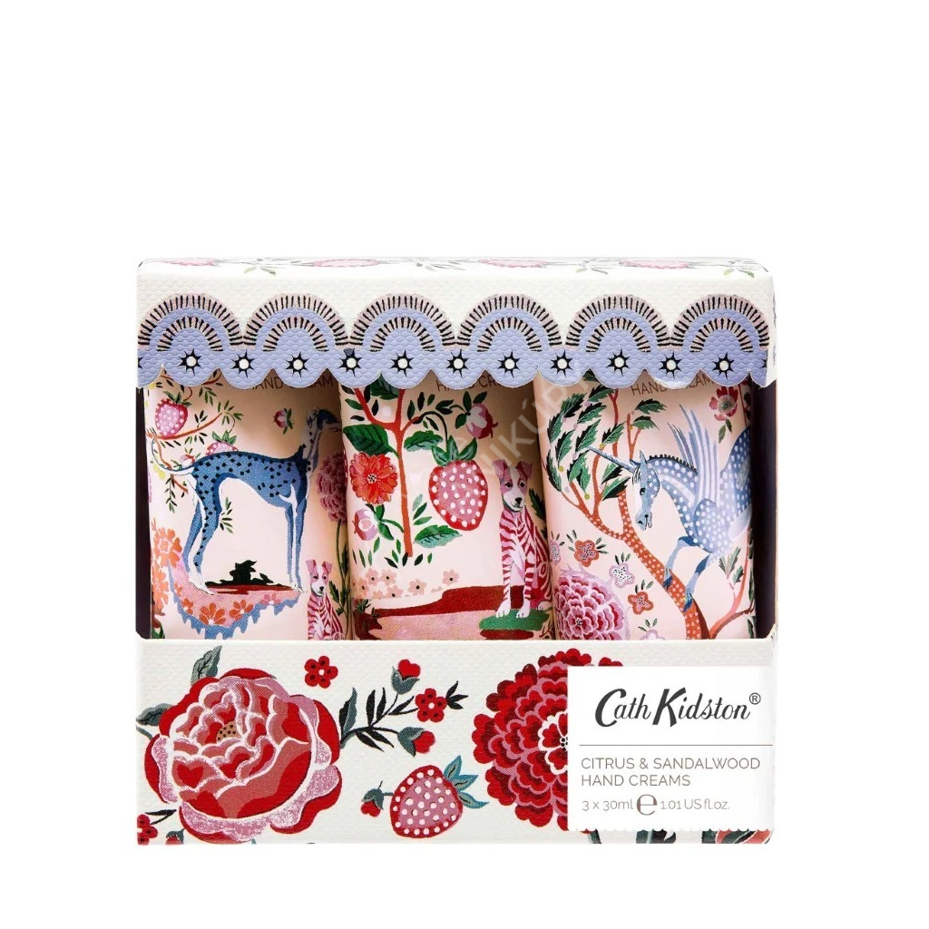 Dárková sada tří krémů na ruce s vůní santalového dřeva a citrusů.