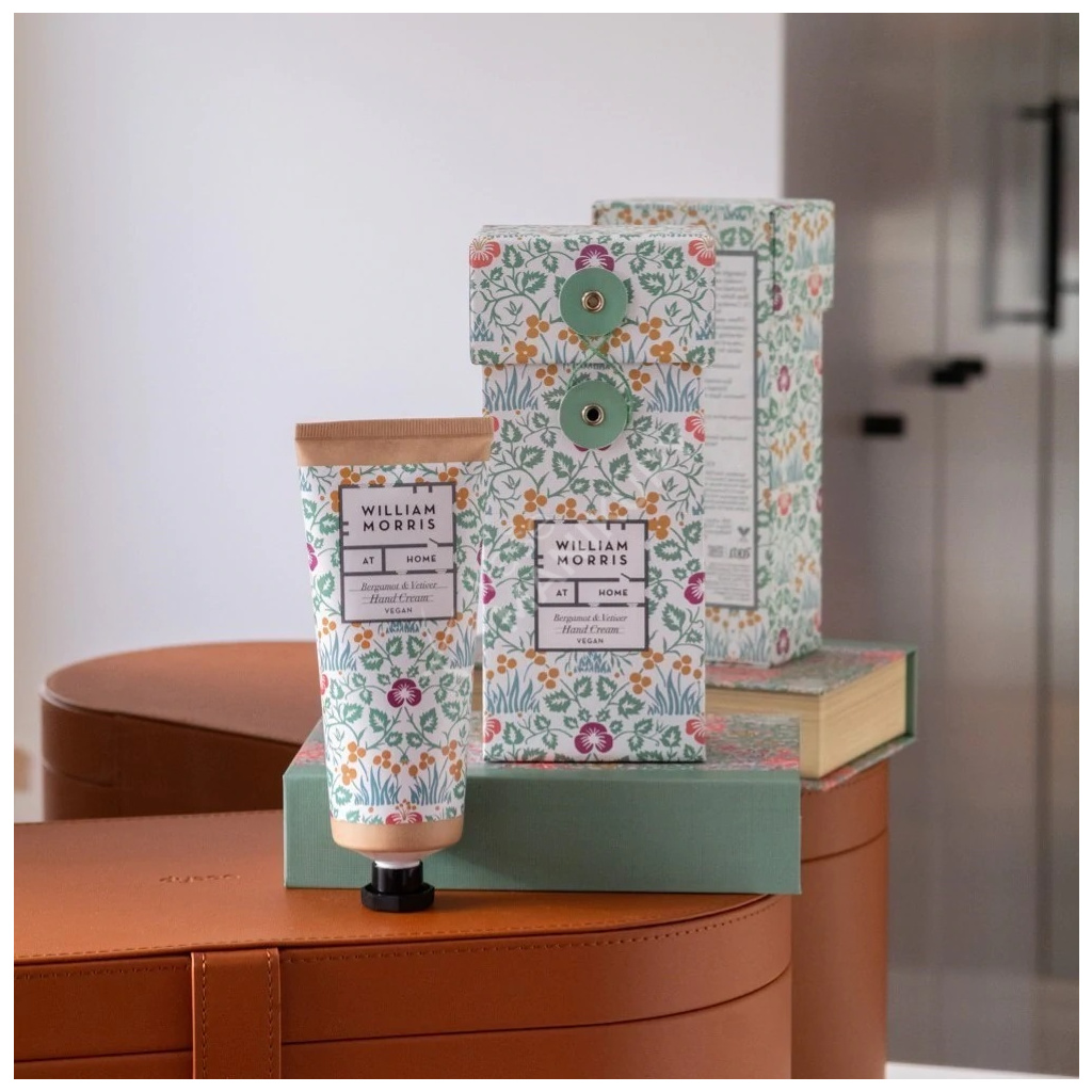 Krém s bohatým přírodním složením hydratuje a chrání pokožku rukou. Krém je ukrytý v překrásném obalu s květinovým potiskem z dílny Morris & Co. Tuba je vyrobená udržitelným způsobem a obsahuje o 33% méně plastu, než běžná balení. Krém je vhodný jako milý dárek.