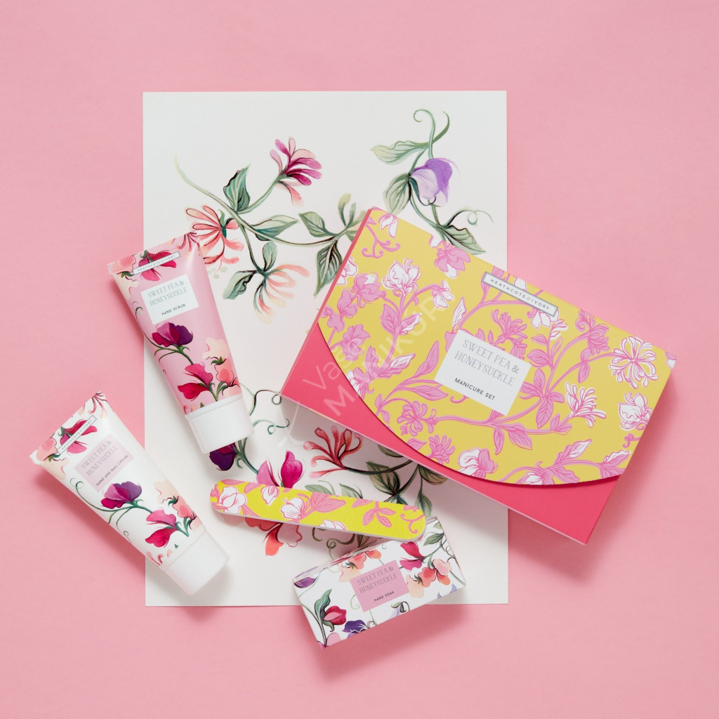 Pečujte o své ruce a nehty s profesionální manikúrní sadou HEATHCOTE & IVORY. Kombinace šetrných ingrediencí s krásným designem tvoří nejlepší recept pro péči o vaše nehty jako ze salonu.Celý set je uložen v hravé barevné krabičce s motivy obsažených květin, díky čemuž je manikúra nejen doplňkem číslo jedna, ale i překrásným dárkem.