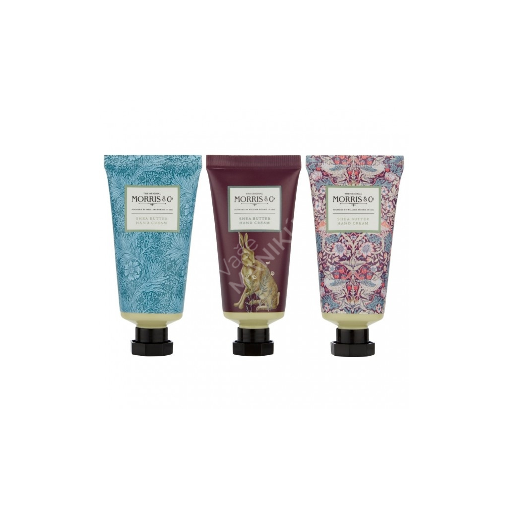 Neodolatelná trojice krémů na ruce HEATHCOTE & IVORY v cestovní velikosti a designu Morris&Co. Luxusní složení růžového jílu, bambuckého másla, jojobového a makadamiového oleje zanechává ruce hebké, vyživené a vláčné. Zahalte své dlaně do svěží vůně květů, zimolezu, ambry a pudrových tónů, která provoní celý váš den.