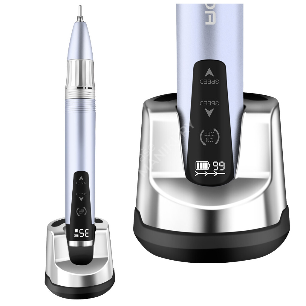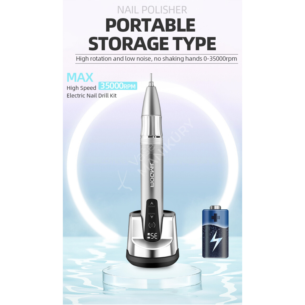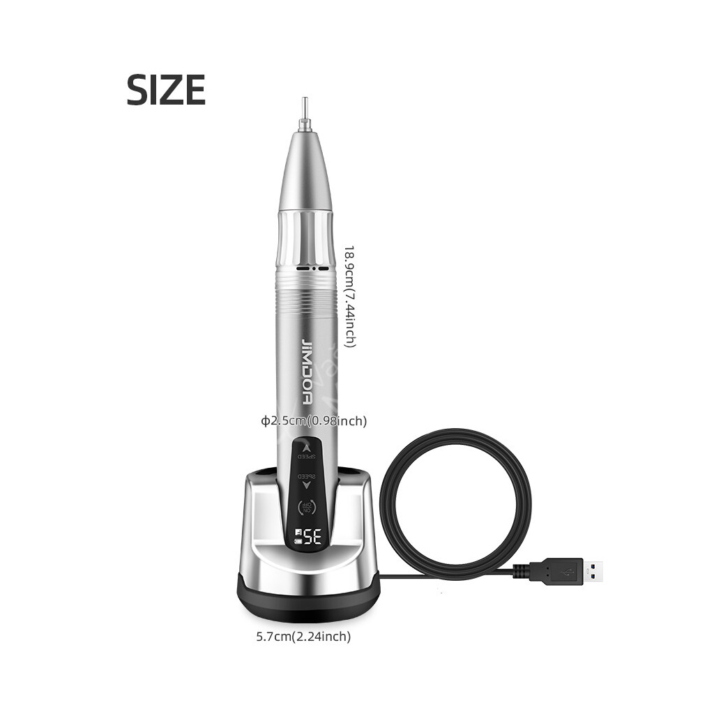 Příjemná, ergonomicky tvarovaná bruska JMD-109S s dobíjecí základnou. Bruska se snadno ovládá i používá a poskytuje při práci potřebný komfort usnadňující její pravidelné používání. Nejvyšší dosažitelná provozní rychlost je 35 tis. ot./min. Optimální příkon magnetické základny pro nabíjení je 15 W. Bruska je navržena pro pravidelný provoz a s cílem dosáhnout vysokého výkonu při klasických operacích spojených s péčí o nehty, jako jsou broušení či leštění.
