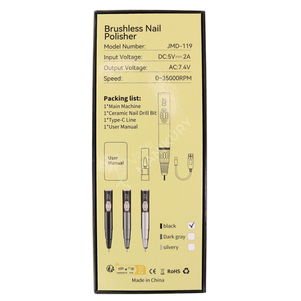 Bezkartáčová bruska na nehty JMD-119 zaujme vysokým výkonem, tichým chodem a elegantním černým designem. Díky kompaktnímu provedení a bateriovému provozu se stane nepostradatelným pomocníkem při profesionální i domácí péči o nehty, včetně mobilních služeb.