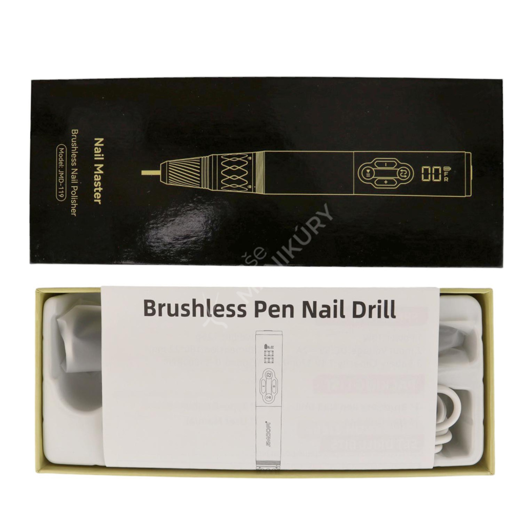 Výkonná bezkartáčová bruska JMD-119 s tichým chodem a bateriovým provozem pro domácí i profesionální manikúru.