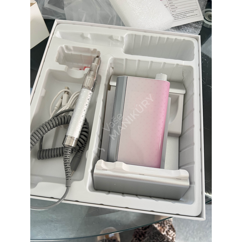 Tělo brusky je vyrobeno z odolné kombinace hliníku a kvalitního ABS plastu, což jí dodává lehkost a zároveň pevnost. Přenosná a dobíjecí konstrukce umožňuje maximální mobilitu – ideální řešení pro práci v salonu i při výjezdech ke klientům.