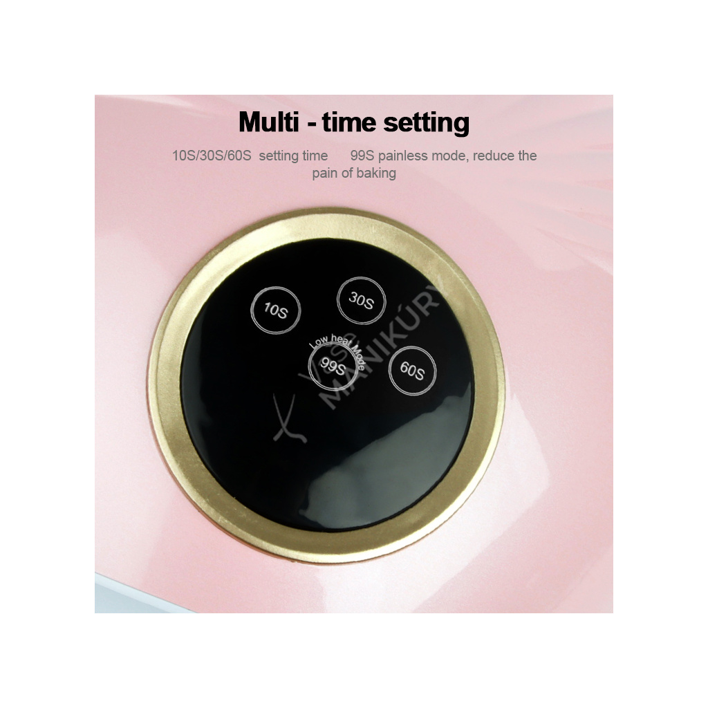 LED UV lampa JMD -601 je určena pro vytvrzování umělých nehtů, které vyžadují působení ultrafialového záření ( gel laky, UV gely, gelové barvy, lepidlo na drahokamy, ...). Je navržena s větším prostorem pro obě ruce nebo nohy najednou bez obav z rozmazání laku. Lampa je vybavena 39 LED světly, které jsou umístěny po celé ploše, což umožňuje rovnoměrné vytvrzování v celé pracovní oblasti. Základna pro tvrzení nehtů je odnímatelná což usnadňuje její čištění. Velký LCD display zobrazující dobu vytvrzování zaručuje, že budete dělat nail art bezpečně, pohodlně a profesionálně v salonu ale i doma.