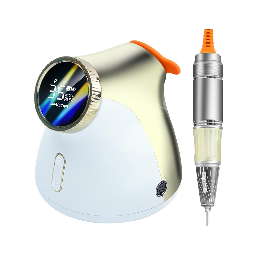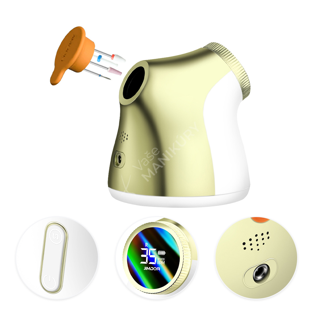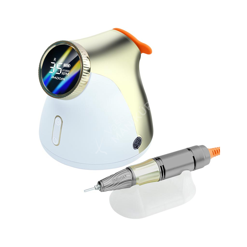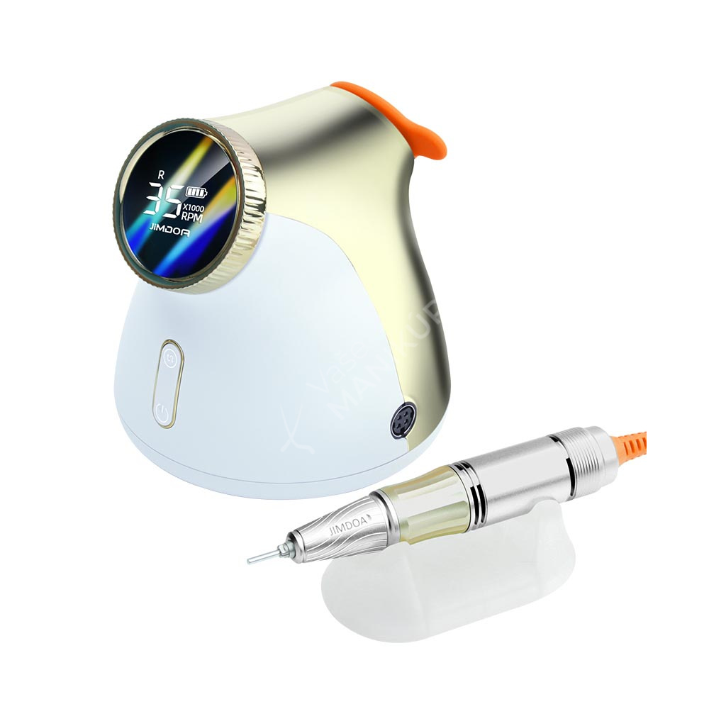 Akumulátorová bruska na nehty JMD-E101P je navržená ve velmi unikátním designu se snadným ovládáním rychlosti a velkokapacitní baterií. Bruska JMD-E101P patří mezi produkty, které budou ozdobou vašeho pracovního stolu. Bruska je velmi kompaktní, s atraktivním designem a velmi intuitivním ovládáním. Brusný nástroj dosahuje rychlosti až 35 tis. ot./min, kterou lze nastavit kontinuálně prostřednictvím otočného regulátoru.Tuto brusku si oblíbíte nejen pro její snadné použití a funkční řešení, ale také pro poutavý design s řadou velmi atraktivních detailů.