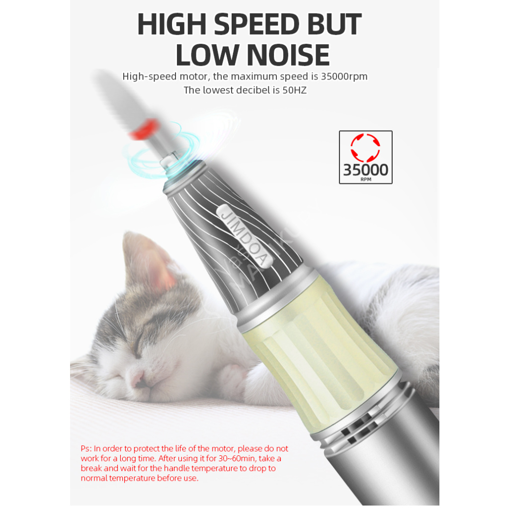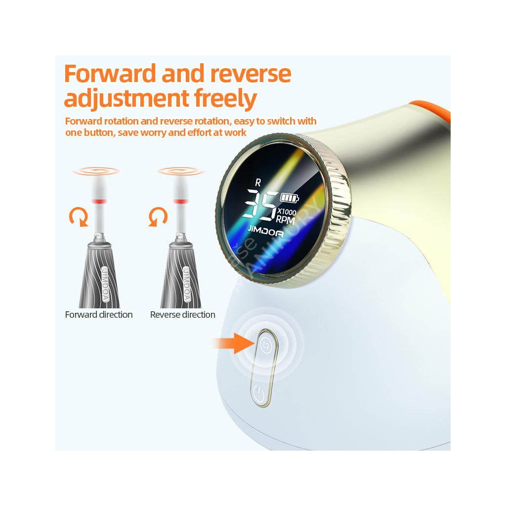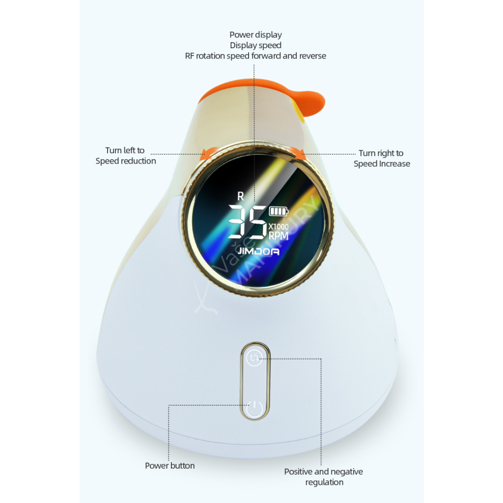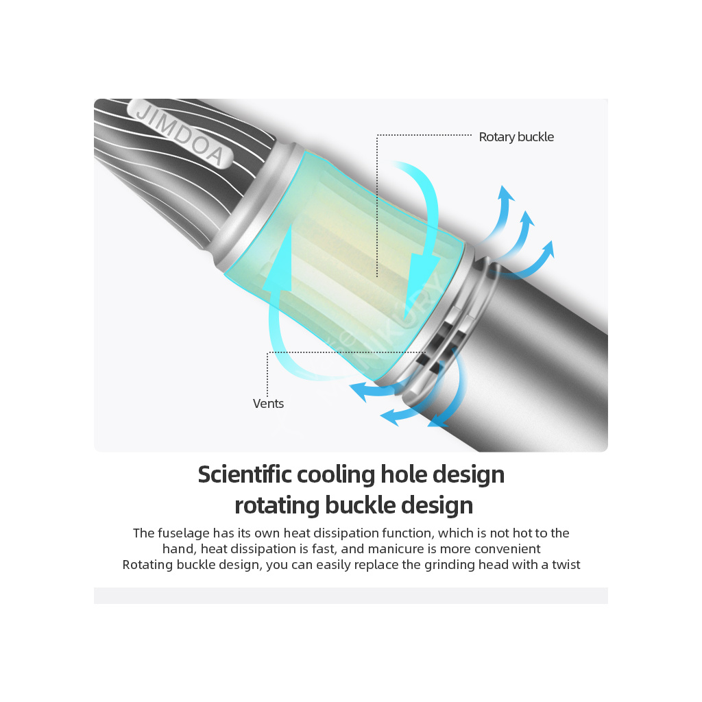 Akumulátorová bruska na nehty JMD-E101P je navržená ve velmi unikátním designu se snadným ovládáním rychlosti a velkokapacitní baterií. Bruska JMD-E101P patří mezi produkty, které budou ozdobou vašeho pracovního stolu. Bruska je velmi kompaktní, s atraktivním designem a velmi intuitivním ovládáním. Brusný nástroj dosahuje rychlosti až 35 tis. ot./min, kterou lze nastavit kontinuálně prostřednictvím otočného regulátoru.Tuto brusku si oblíbíte nejen pro její snadné použití a funkční řešení, ale také pro poutavý design s řadou velmi atraktivních detailů.