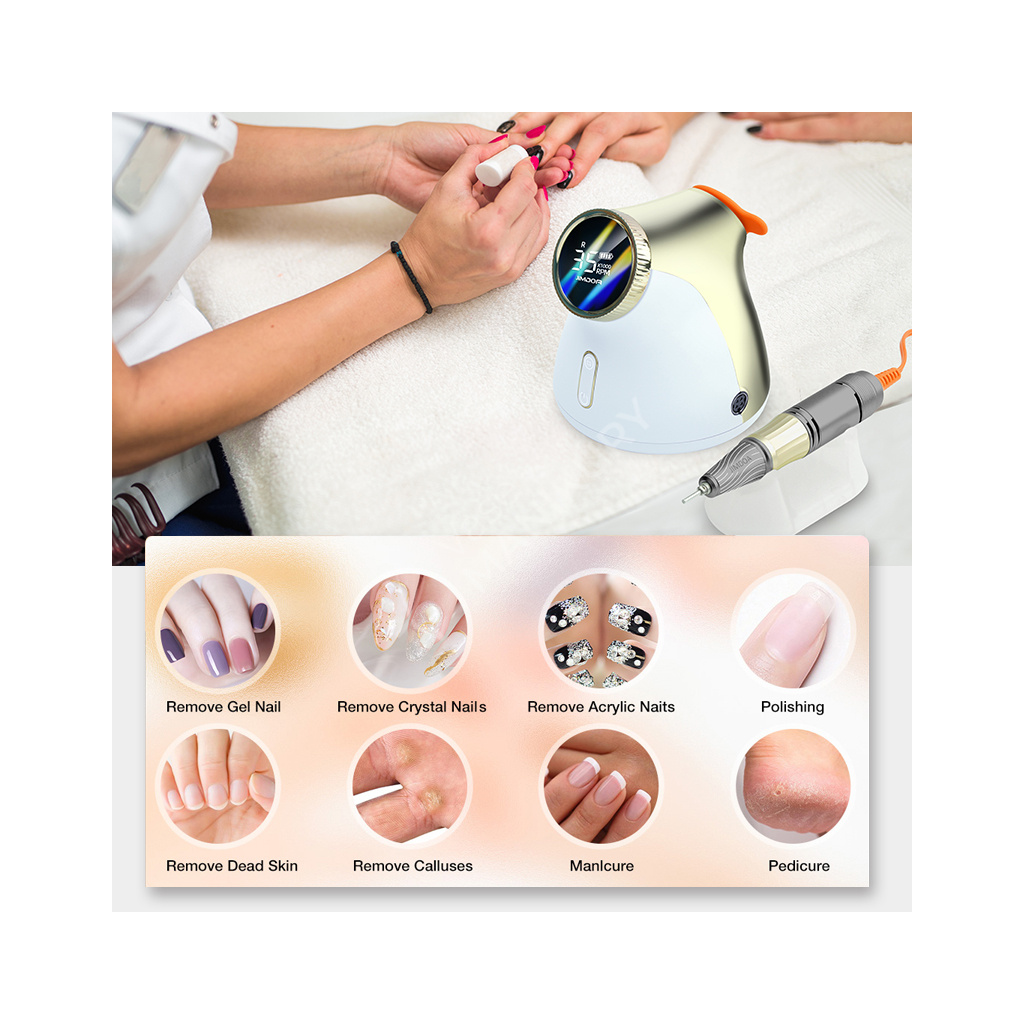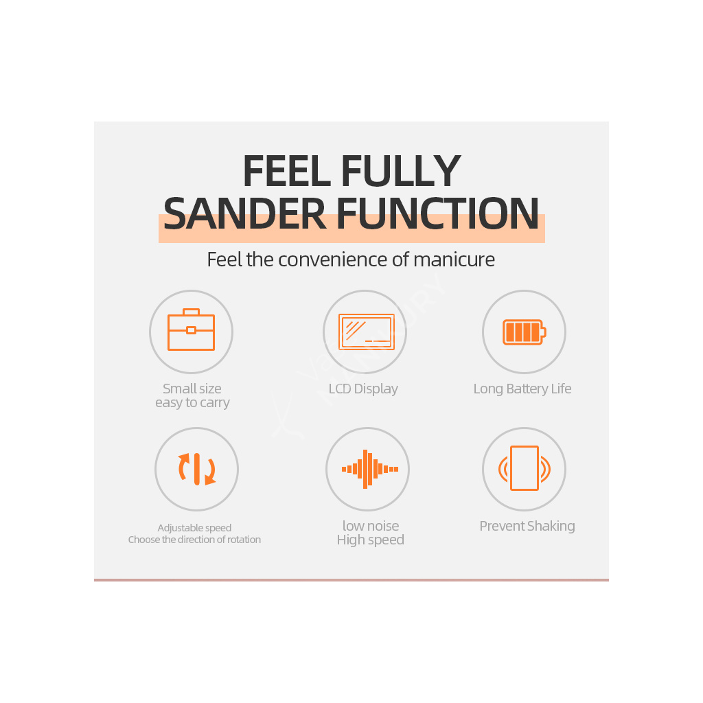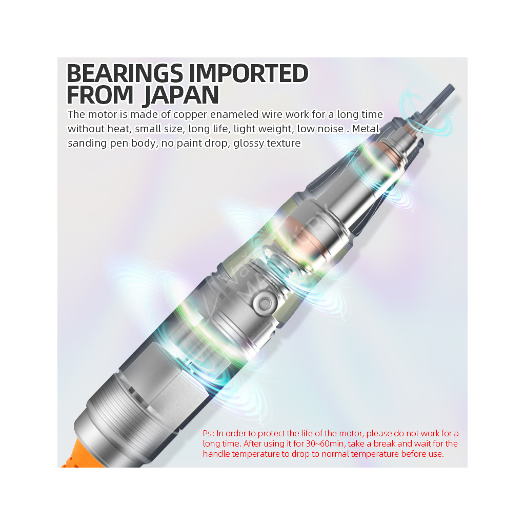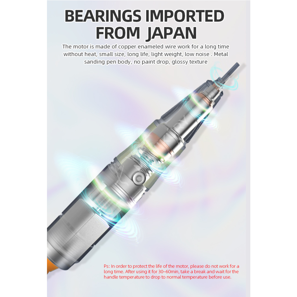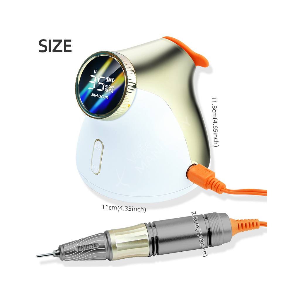 Akumulátorová bruska na nehty JMD-E101P je navržená ve velmi unikátním designu se snadným ovládáním rychlosti a velkokapacitní baterií. Bruska JMD-E101P patří mezi produkty, které budou ozdobou vašeho pracovního stolu. Bruska je velmi kompaktní, s atraktivním designem a velmi intuitivním ovládáním. Brusný nástroj dosahuje rychlosti až 35 tis. ot./min, kterou lze nastavit kontinuálně prostřednictvím otočného regulátoru.Tuto brusku si oblíbíte nejen pro její snadné použití a funkční řešení, ale také pro poutavý design s řadou velmi atraktivních detailů.