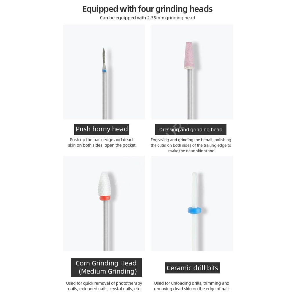 - balení obsahuje 4 různé nástavce na úpravu nehtů
