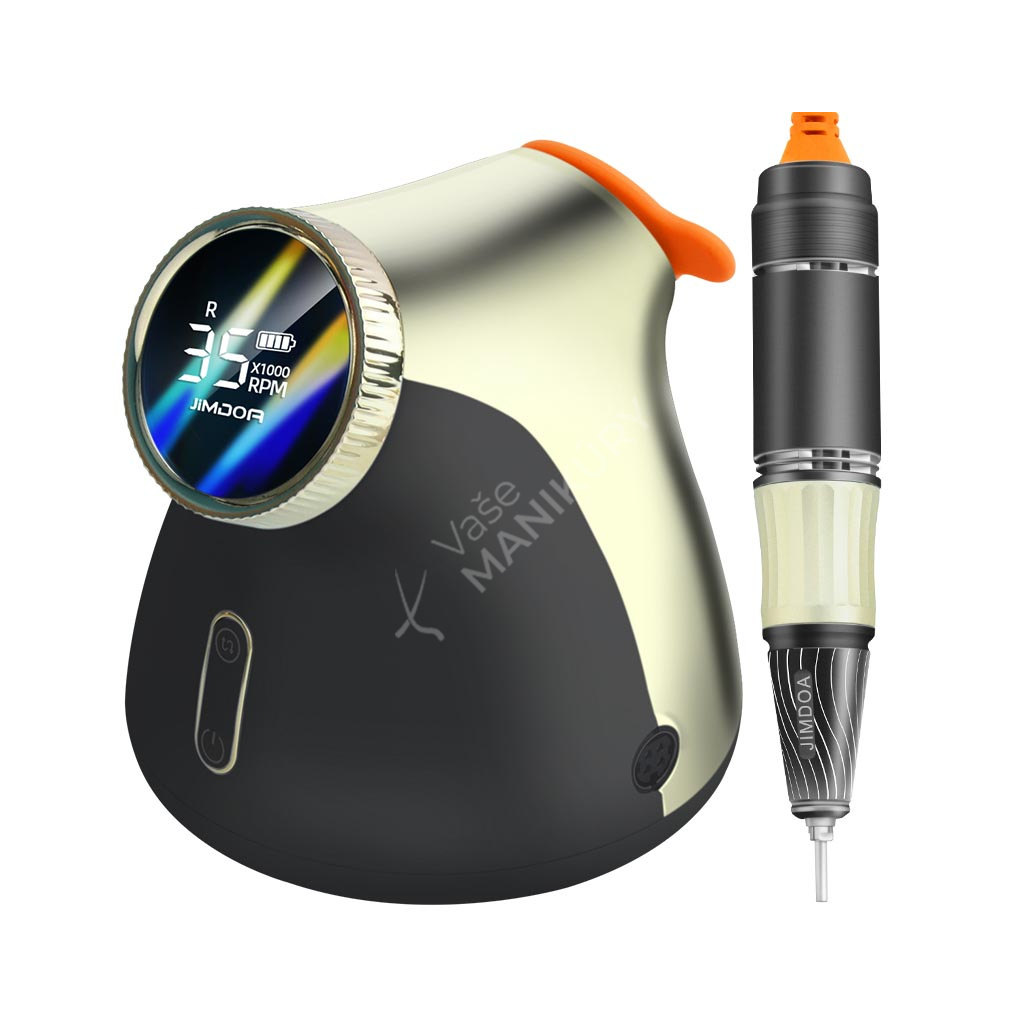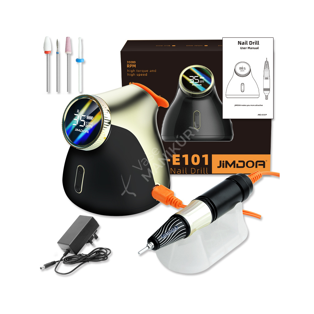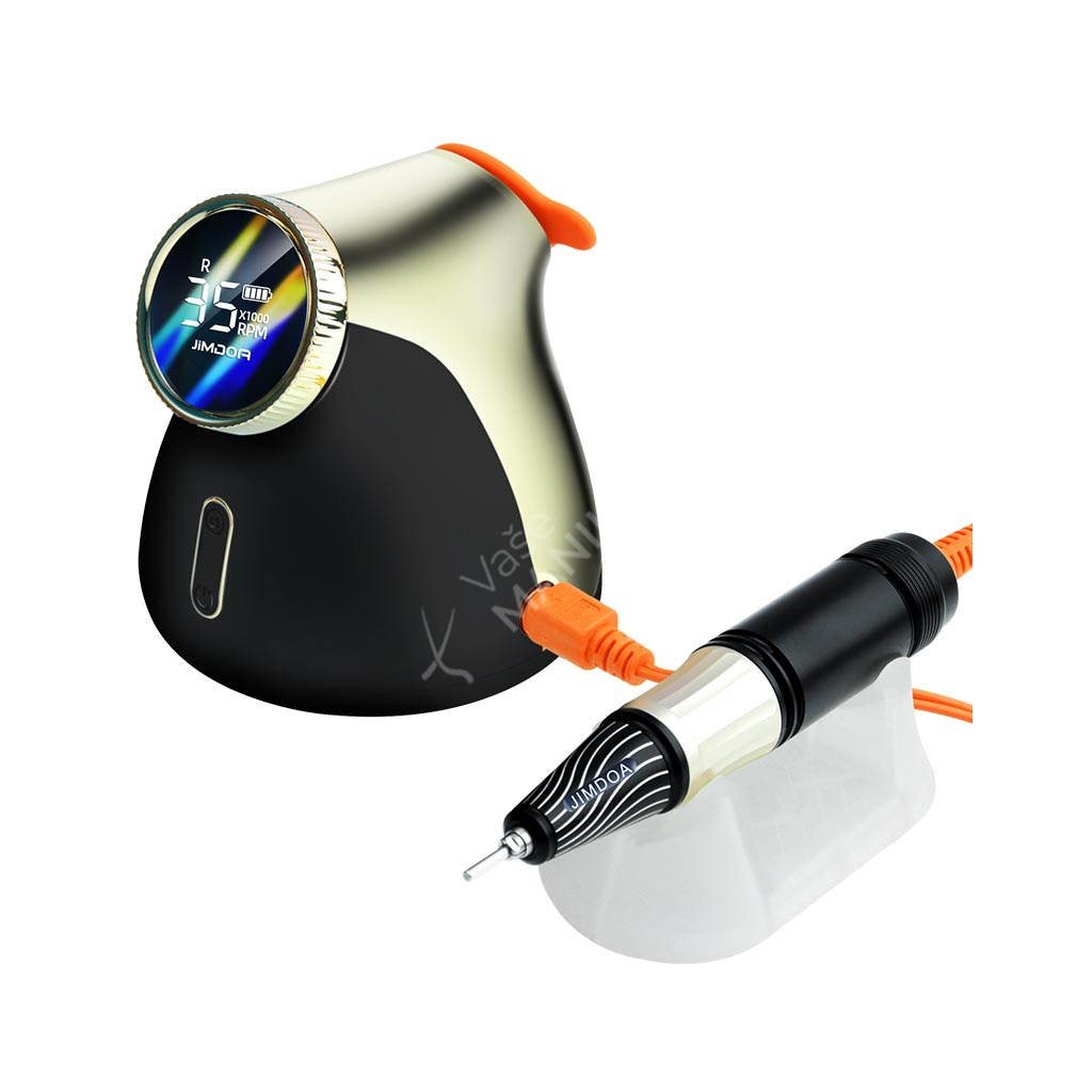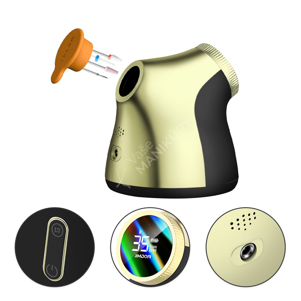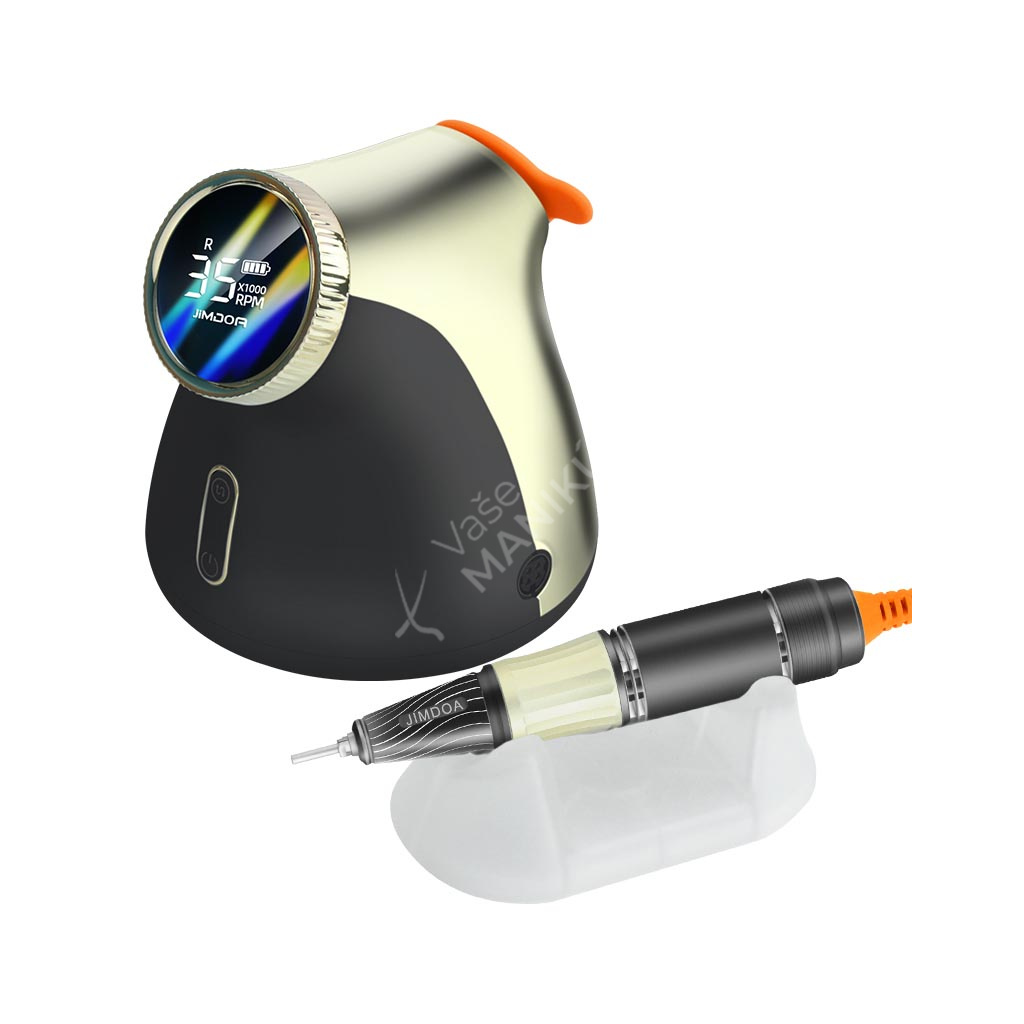 Akumulátorová bruska na nehty JMD-E101P je navržená ve velmi unikátním designu se snadným ovládáním rychlosti a velkokapacitní baterií. Bruska JMD-E101P patří mezi produkty, které budou ozdobou vašeho pracovního stolu. Bruska je velmi kompaktní, s atraktivním designem a velmi intuitivním ovládáním. Brusný nástroj dosahuje rychlosti až 35 tis. ot./min, kterou lze nastavit kontinuálně prostřednictvím otočného regulátoru.Tuto brusku si oblíbíte nejen pro její snadné použití a funkční řešení, ale také pro poutavý design s řadou velmi atraktivních detailů.