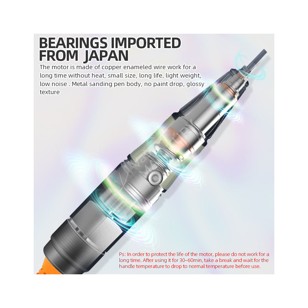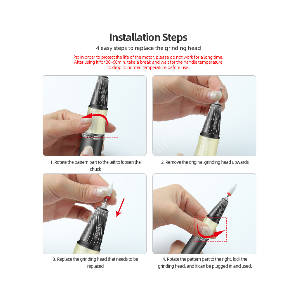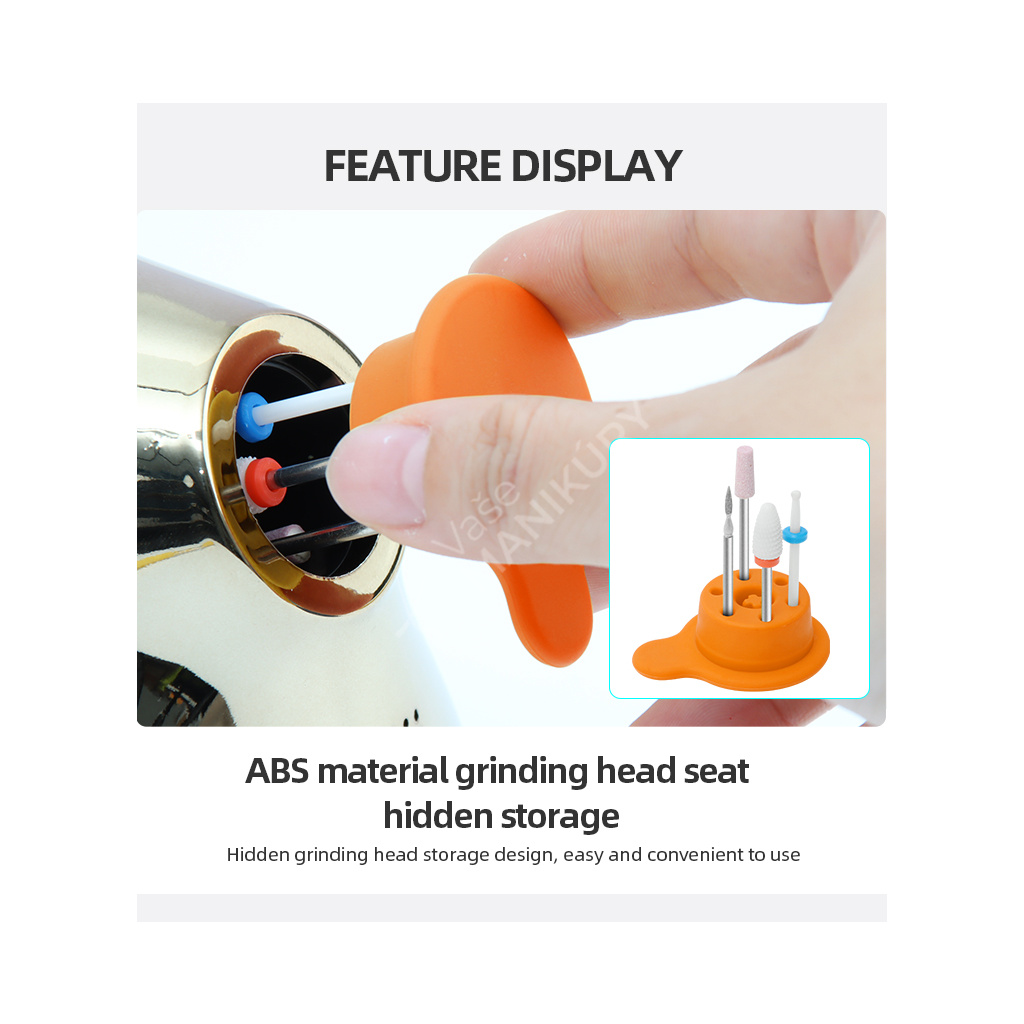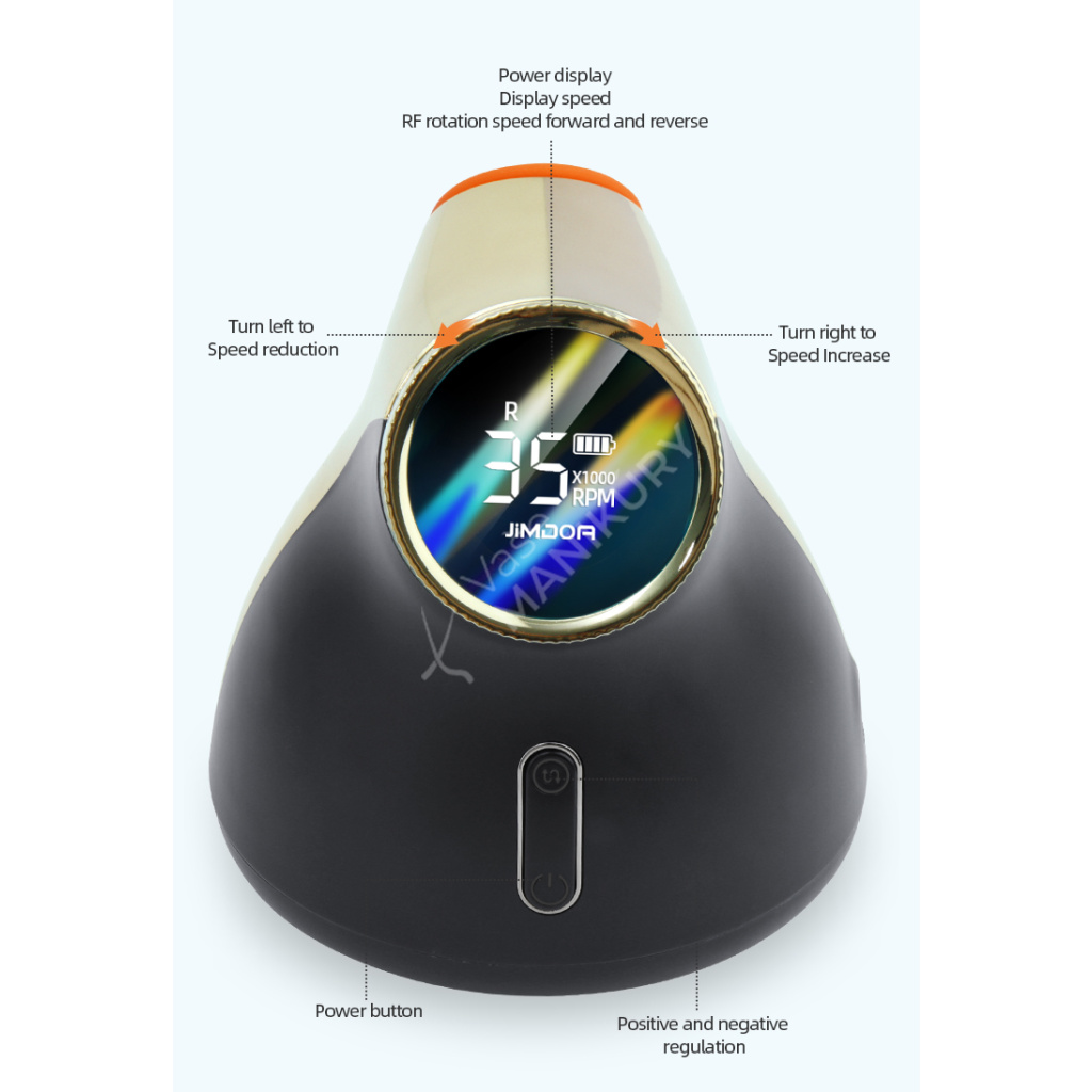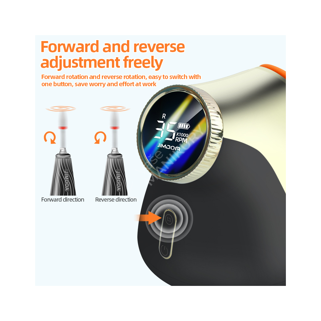 Akumulátorová bruska na nehty JMD-E101P je navržená ve velmi unikátním designu se snadným ovládáním rychlosti a velkokapacitní baterií. Bruska JMD-E101P patří mezi produkty, které budou ozdobou vašeho pracovního stolu. Bruska je velmi kompaktní, s atraktivním designem a velmi intuitivním ovládáním. Brusný nástroj dosahuje rychlosti až 35 tis. ot./min, kterou lze nastavit kontinuálně prostřednictvím otočného regulátoru.Tuto brusku si oblíbíte nejen pro její snadné použití a funkční řešení, ale také pro poutavý design s řadou velmi atraktivních detailů.