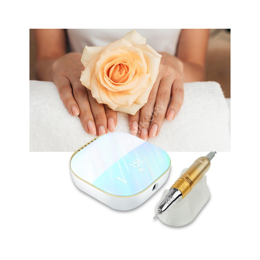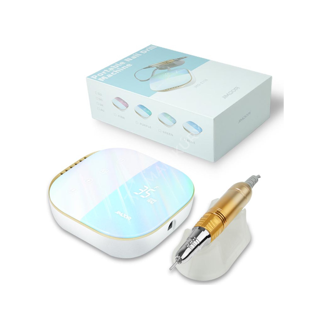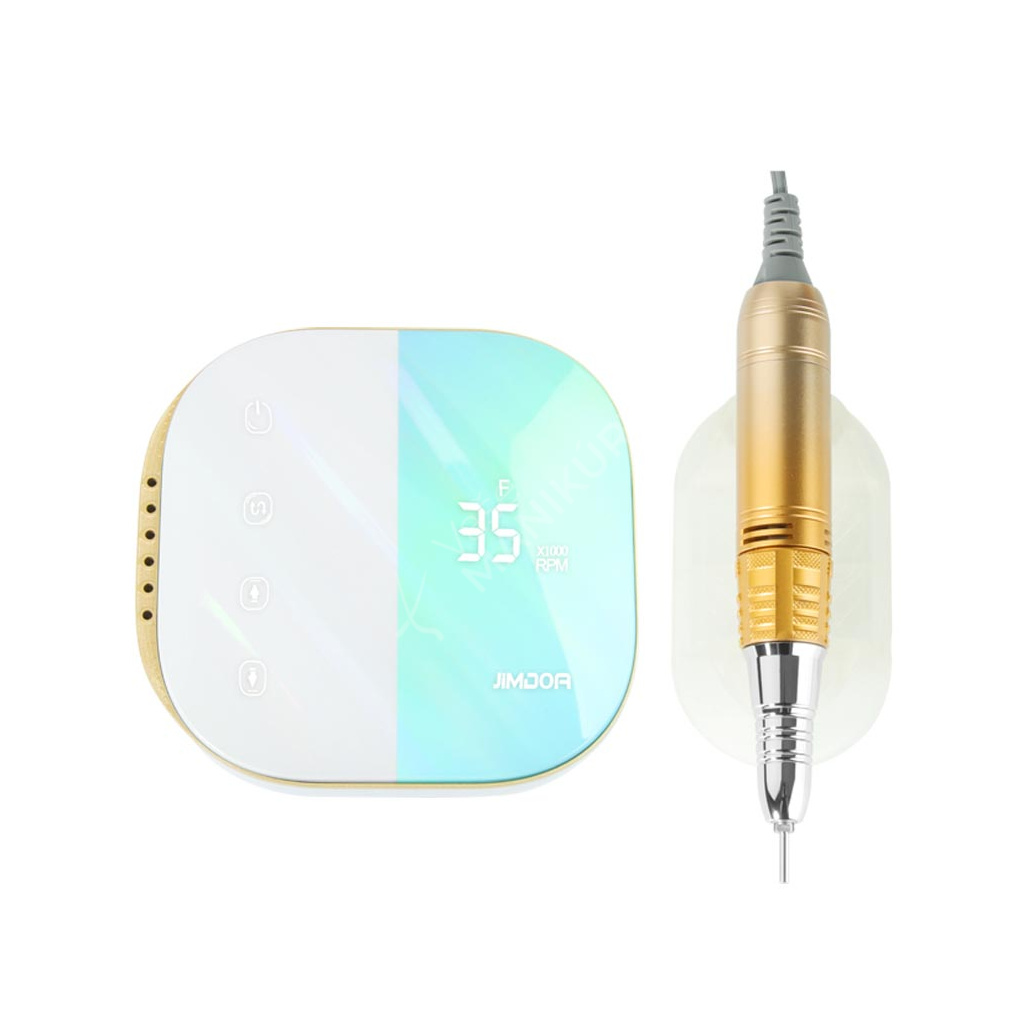 Bruska na nehty JIMDOA model JMD-E108 je moderní zařízení pro úpravu nehtů (přírodních i umělých) na rukou i nohou. Bruska se skládá z ovládacího panelu, který je zároveň nabíjecí stanicí, a brusného nástavce s rukojetí. Bruska je akumulátorová dobíjecí s velmi nízkou hlučností. Ergonomická rukojeť se velmi dobře drží a eliminuje vibrace. Rukojeť je vyrobena vyrobena z hliníkové slitiny (dlouhá životnost zařízení) v kombinaci s plastovými částmi. Bruska má kompaktní tvar pro snadné a pohodlné přenášení a galvanické pokovování jasnými barvami. Brusku je možné pořídit v několika atraktivních barevných variantách.