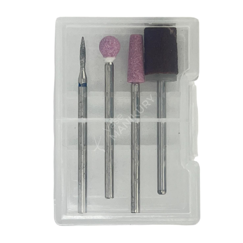 Součástí balení jsou čtyři brusné nástavce, které umožňují okamžité použití pro různé typy úprav a tvarování nehtů.