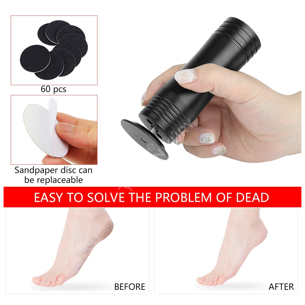 Použití: Před použitím namočte nohy do teplé vody, aby změkla odumřelá kůže. Poté vyjměte brusné listy – v balení najdete 50 kusů – připevněte jeden na otočný kotouč, zapojte napájení a pilník je připraven k použití.