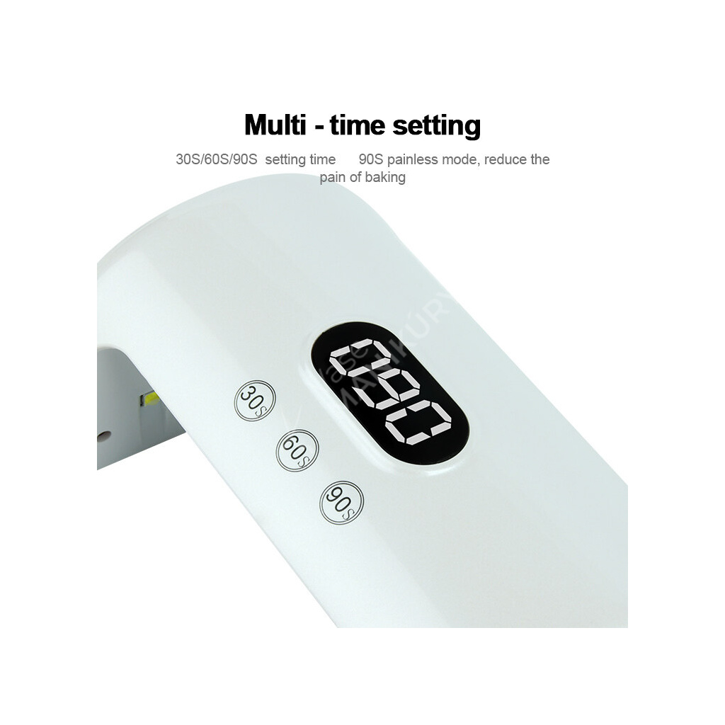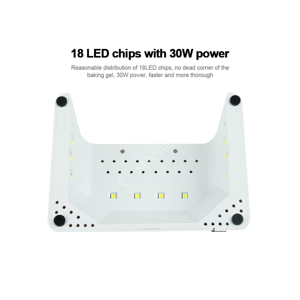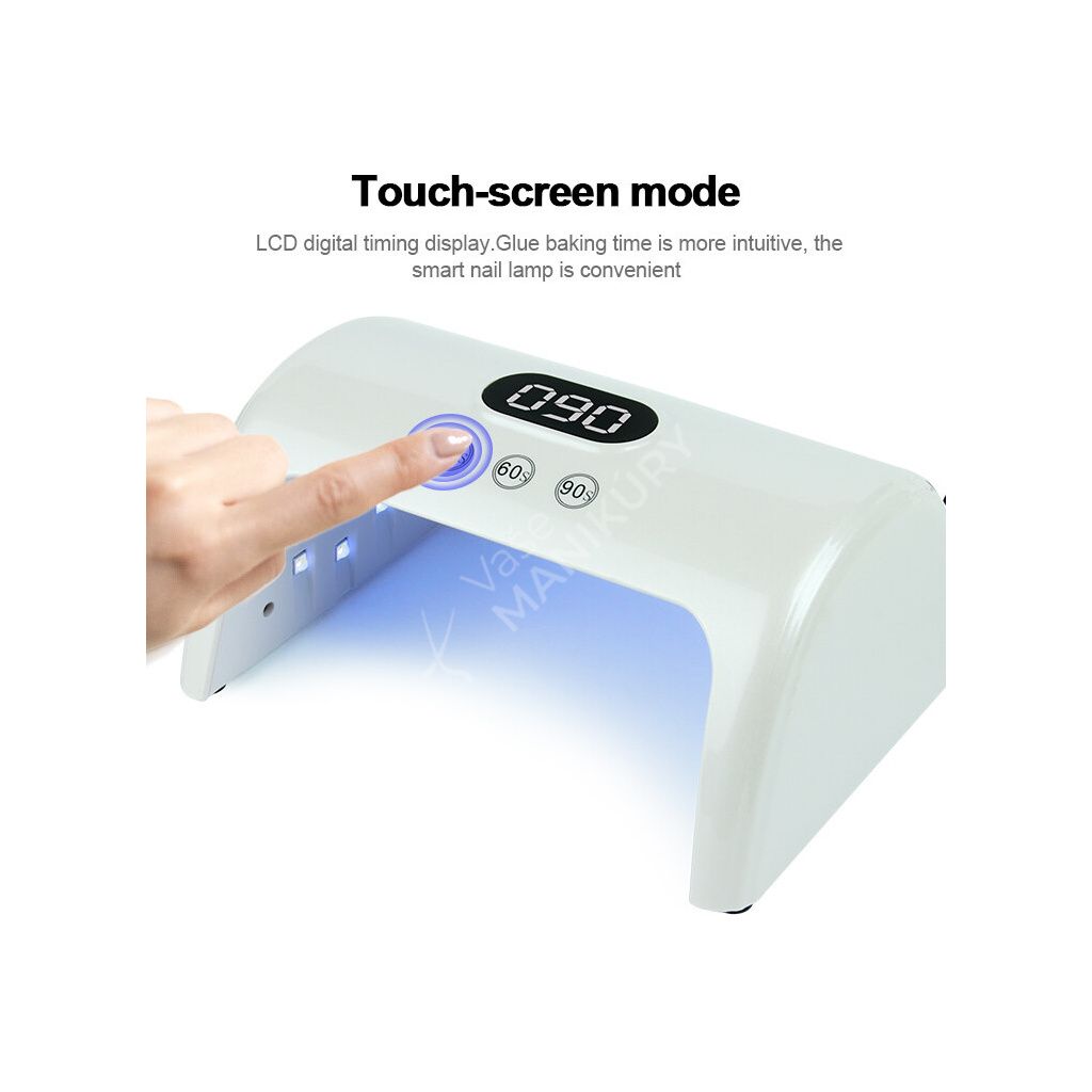 Lampa je vybavena 15 LED diodami, které jsou umístěny po celé ploše, což umožňuje rovnoměrné vytvrzování v celé pracovní oblasti. Z. Velký LCD display zobrazující dobu vytvrzování zaručuje, že budete dělat nail art bezpečně, pohodlně a profesionálně v salonu ale i doma.