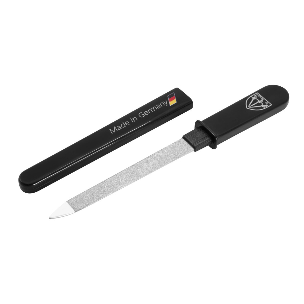 - Safírový pilník Kellermann – Kompaktní pilník s kvalitní safírovou úpravou, která nepoškozuje nehet a zajišťuje hladké tvarování suchých nehtů. Špička pilníku slouží také pro čištění nehtů, což jej činí praktickým společníkem na cesty.